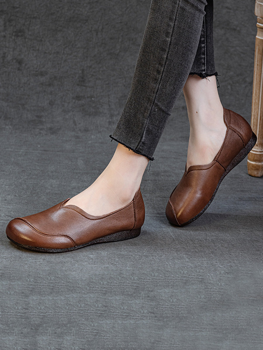 Women Autumn Vintage Genuine Leather Flat Shoes