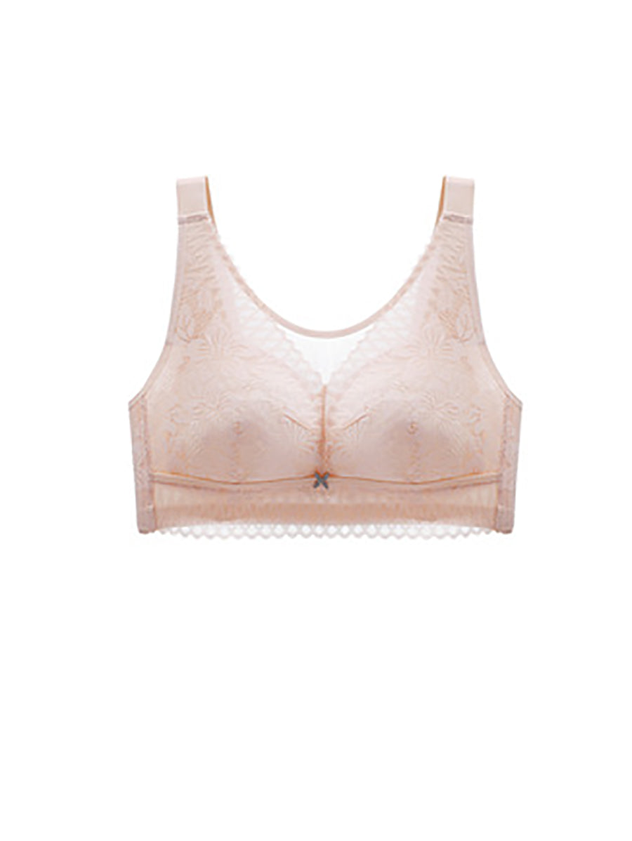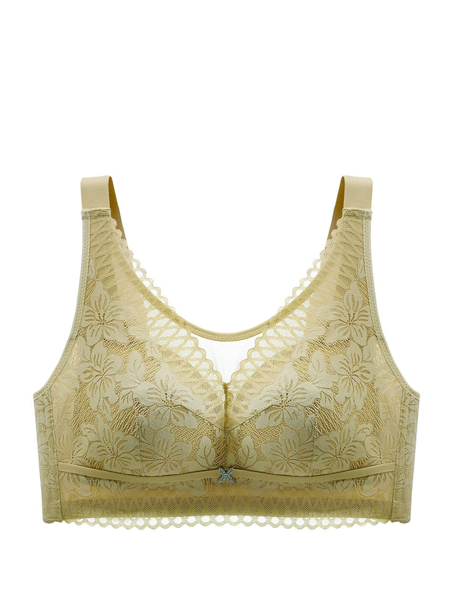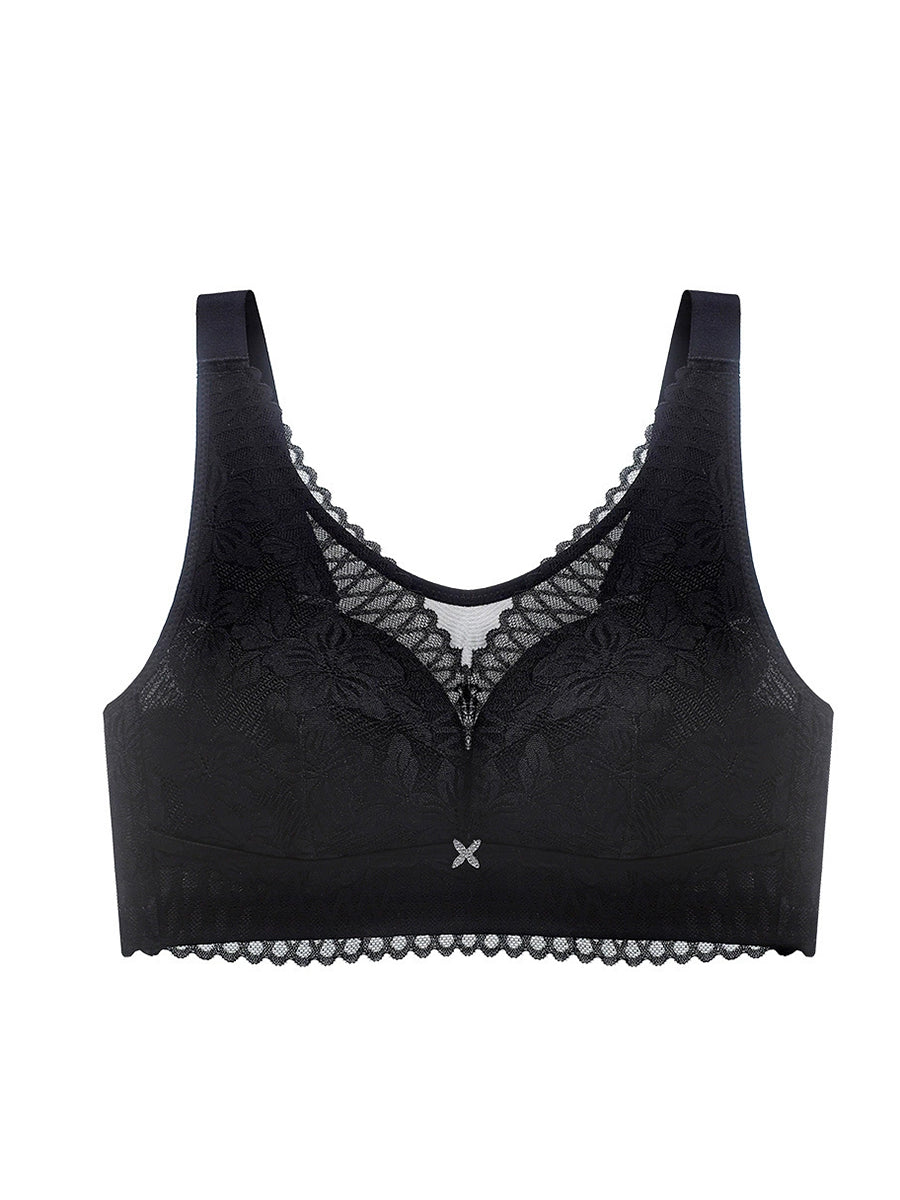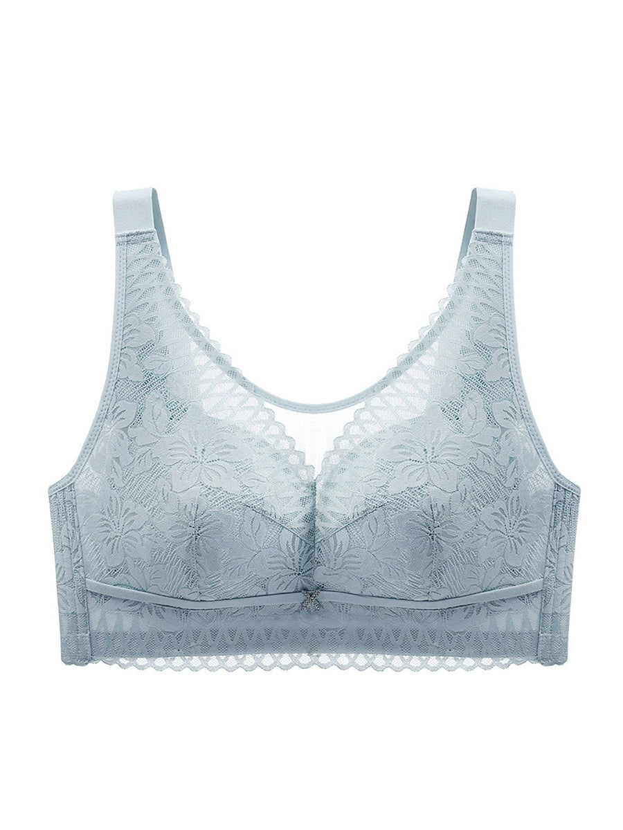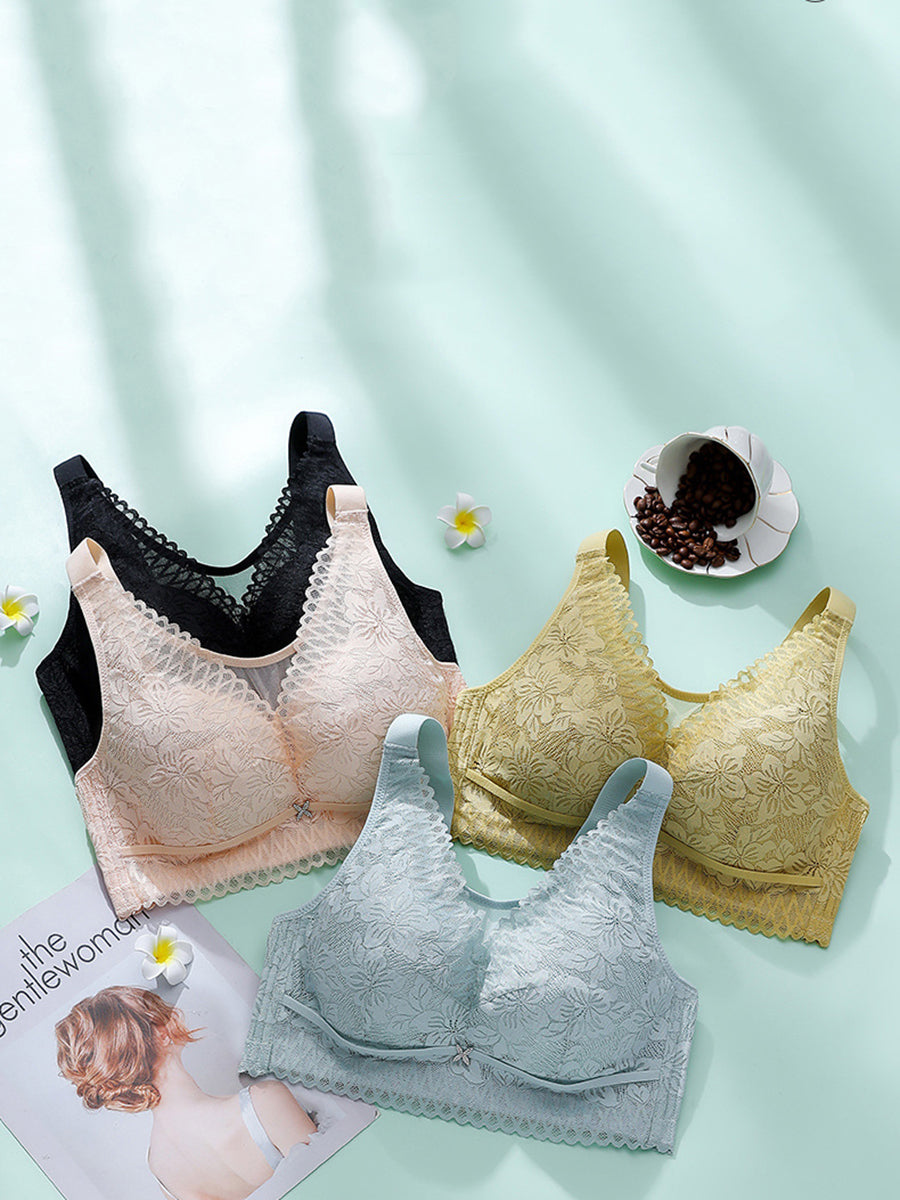 Women Casual Artsy Flower Lace Wireless Bra