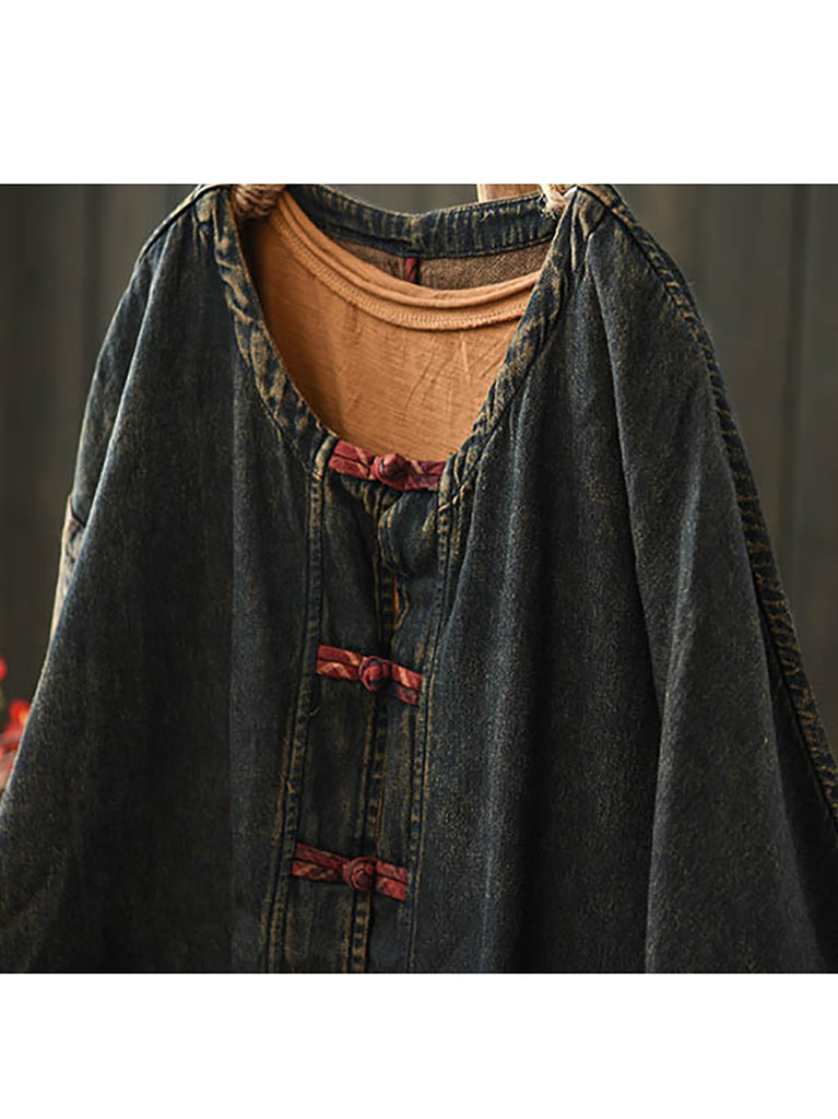Women Retro Autumn Patchwork Denim Shirt Coat