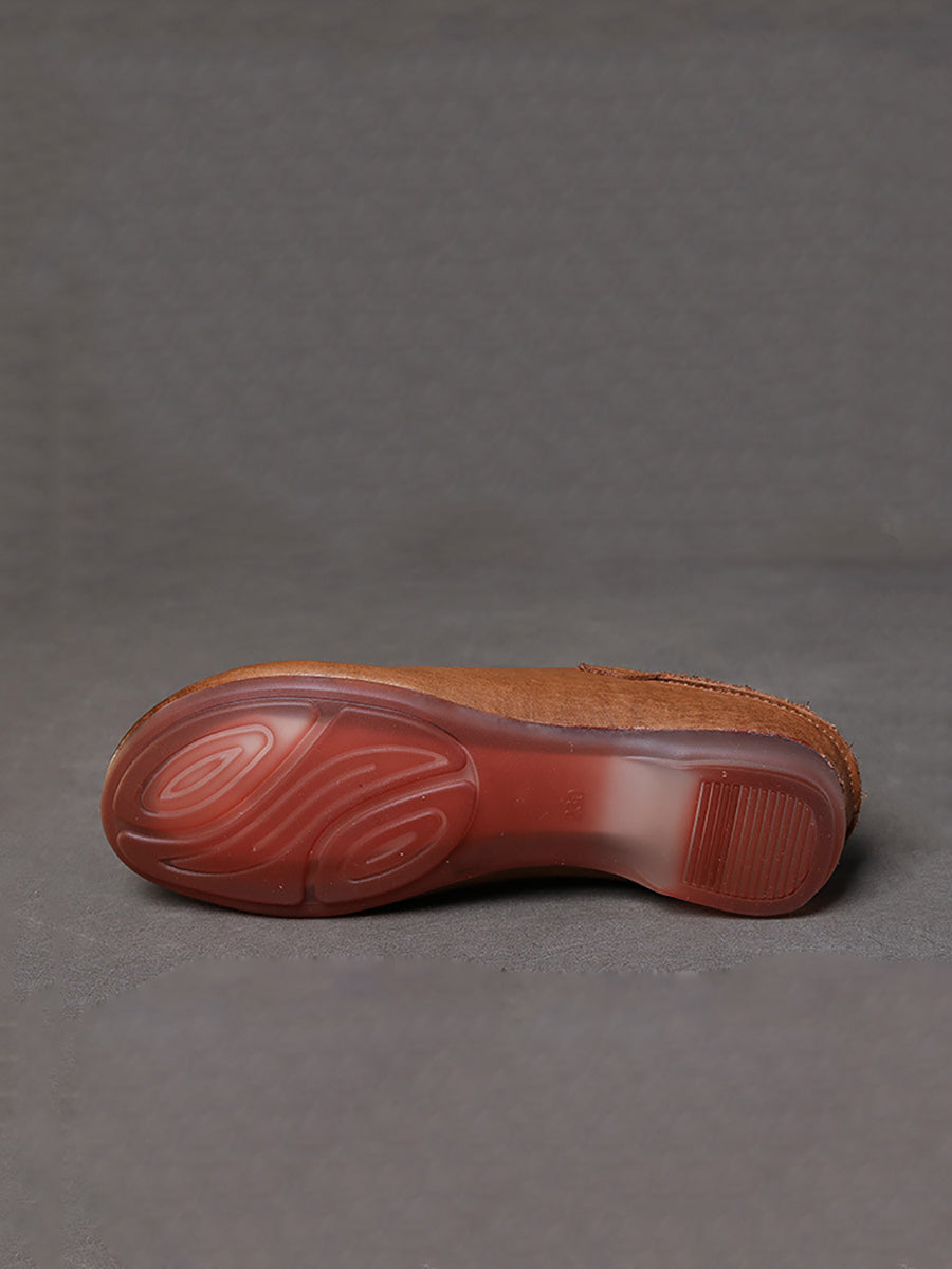 Women Retro Soft Leather Spliced Solid Low-Heel Shoes