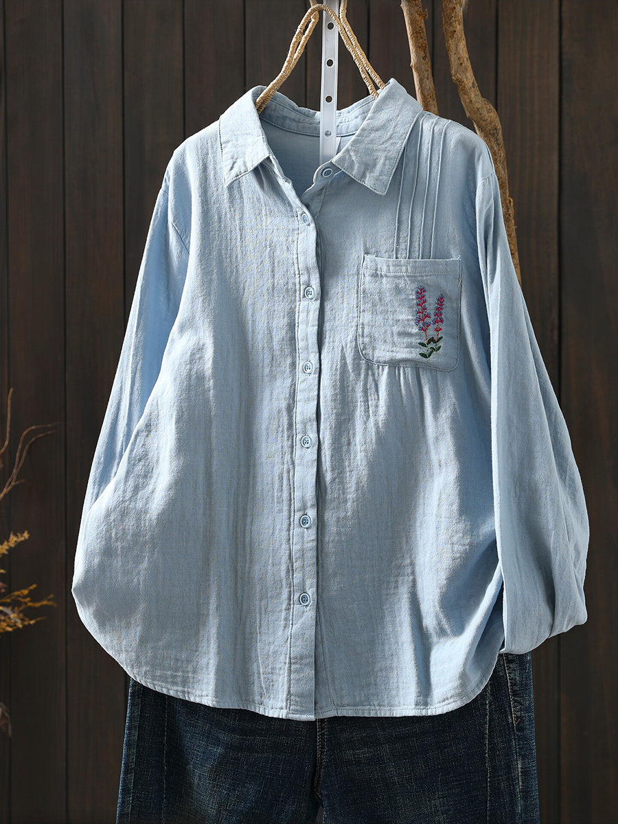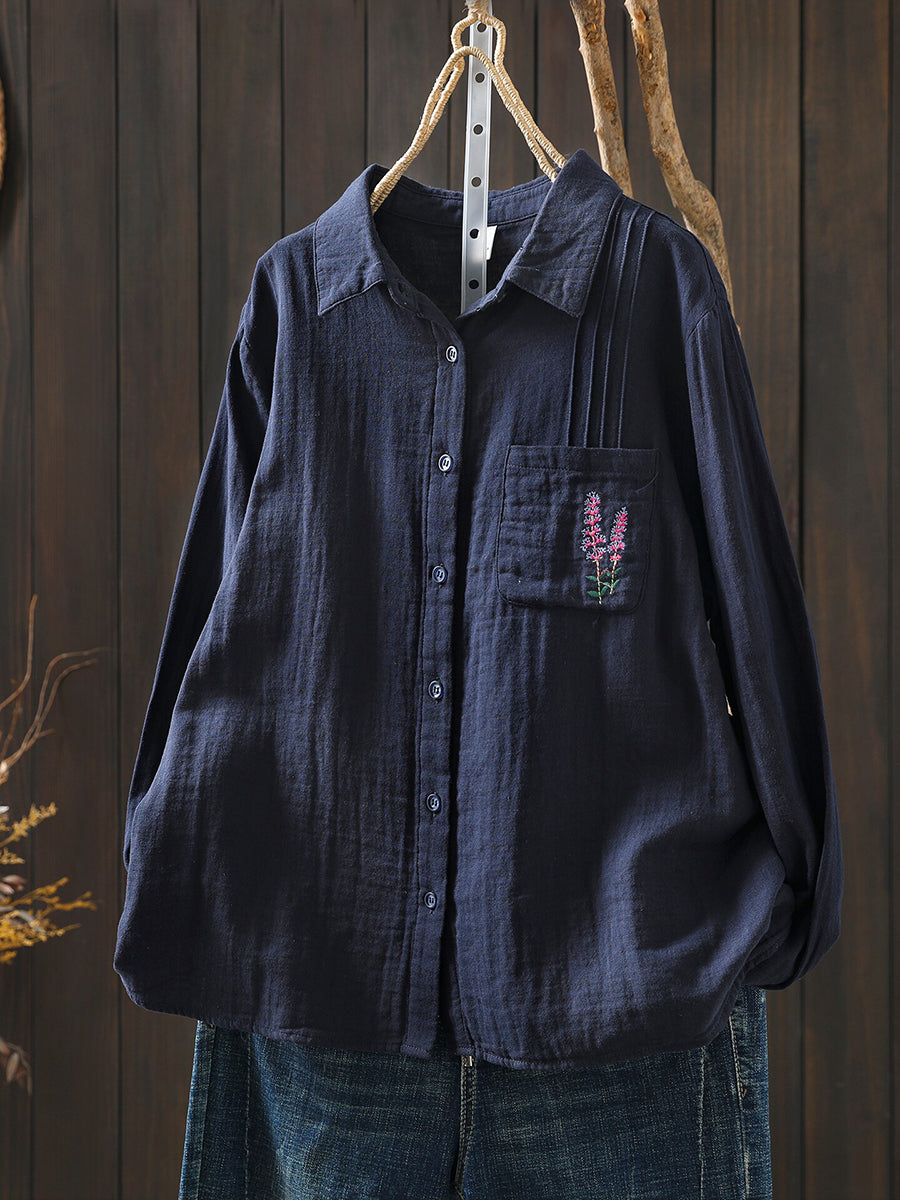 Women Spring Artsy Embroidery 100%Cotton Shirt