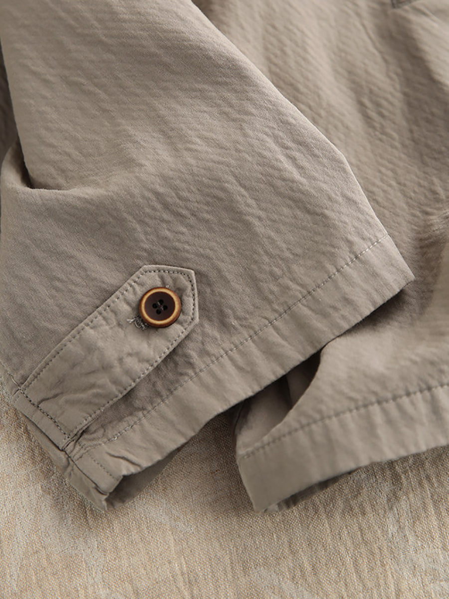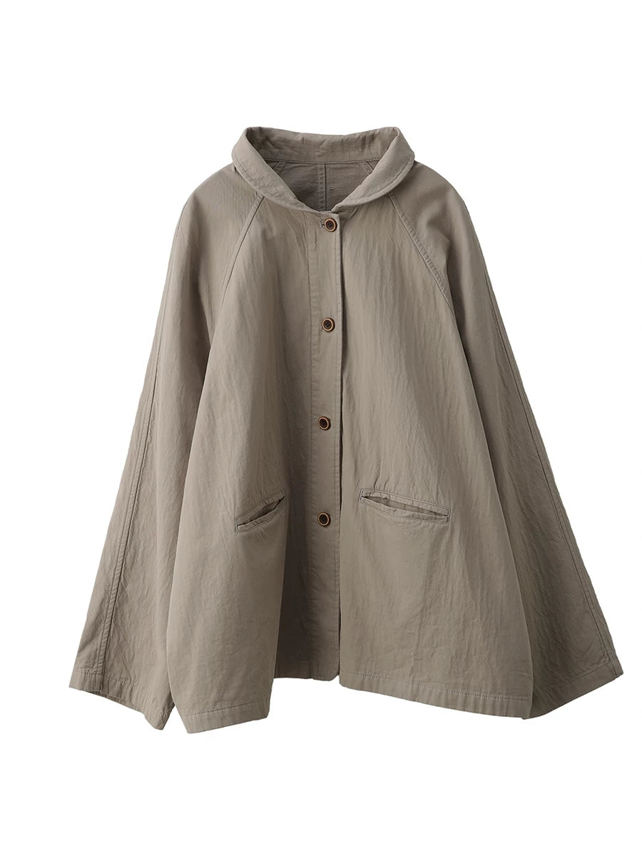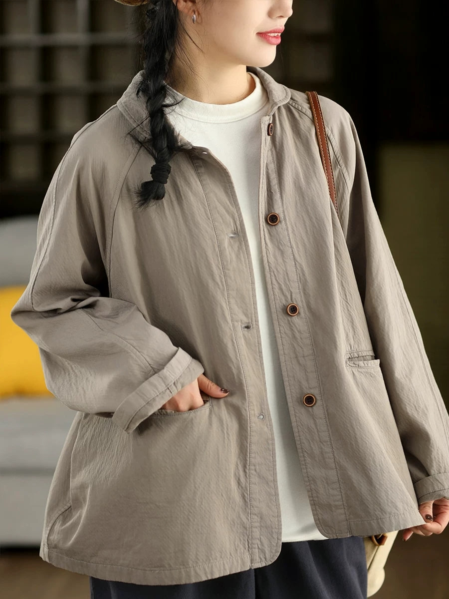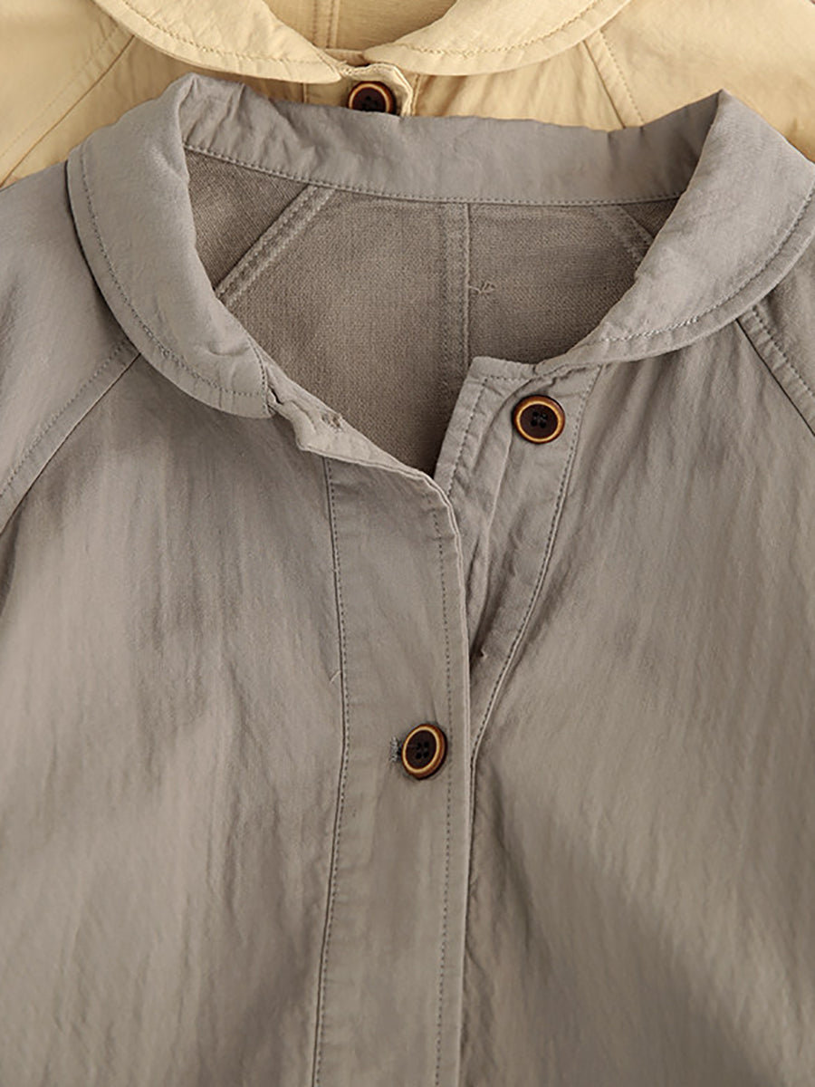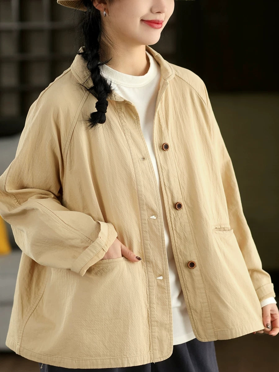 Women Spring Artsy Pure Color 100%Cotton Shirt Coat