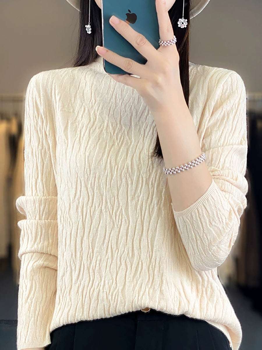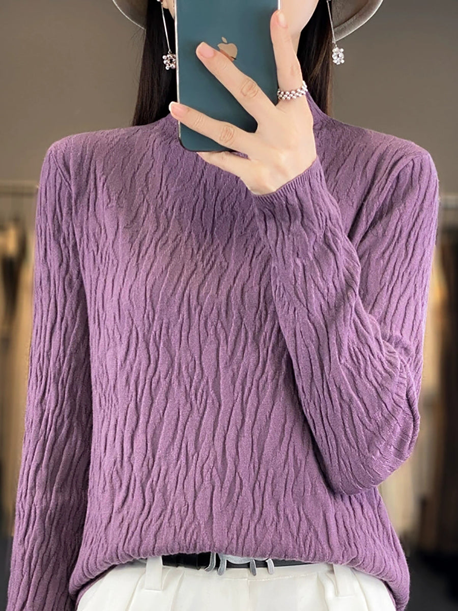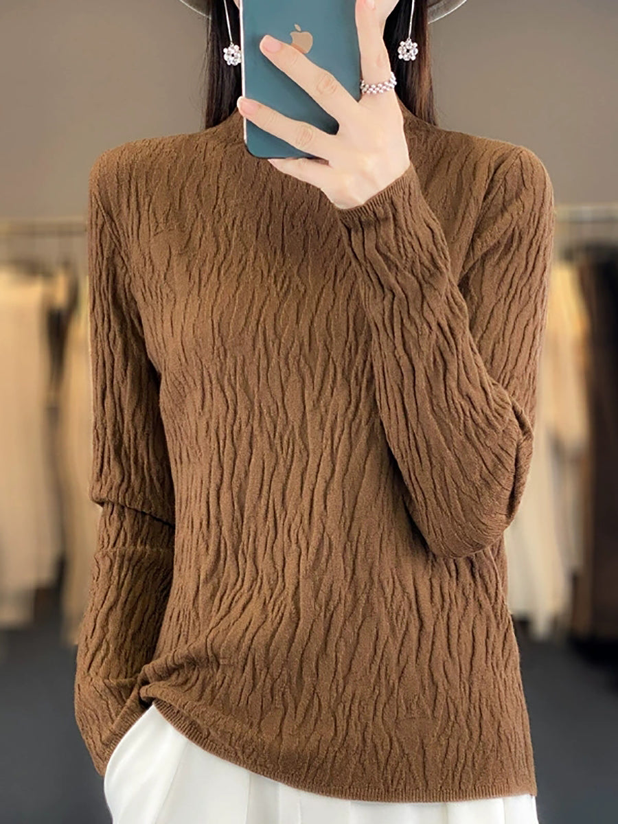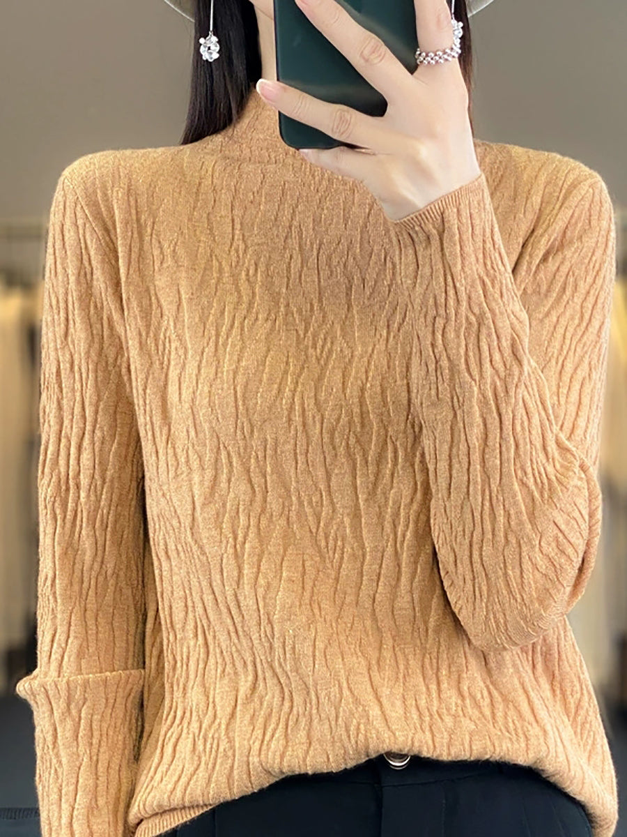 Women Spring Casual Pure Color Half-Turtleneck Sweater