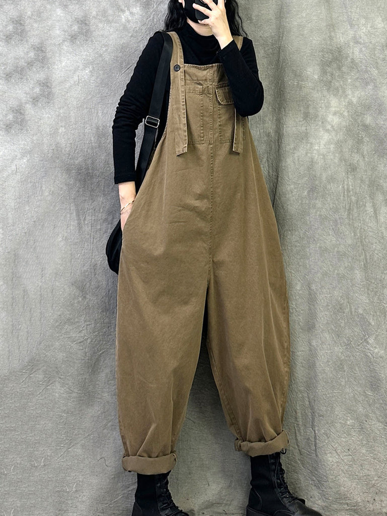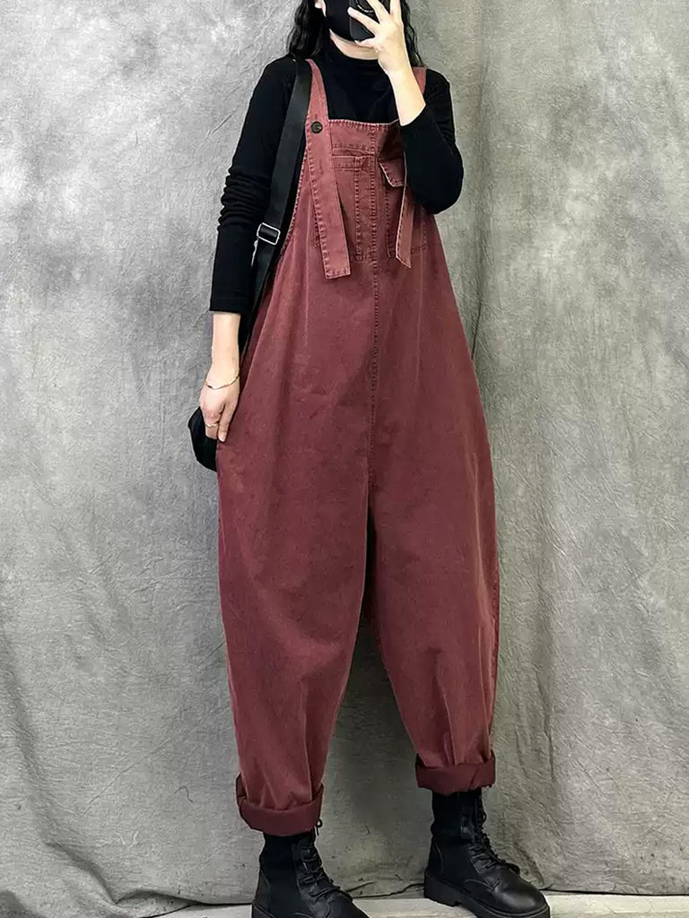 Plus Size Women Spring Casual Pure Color Loose Jumpsuits