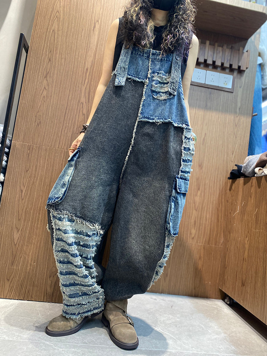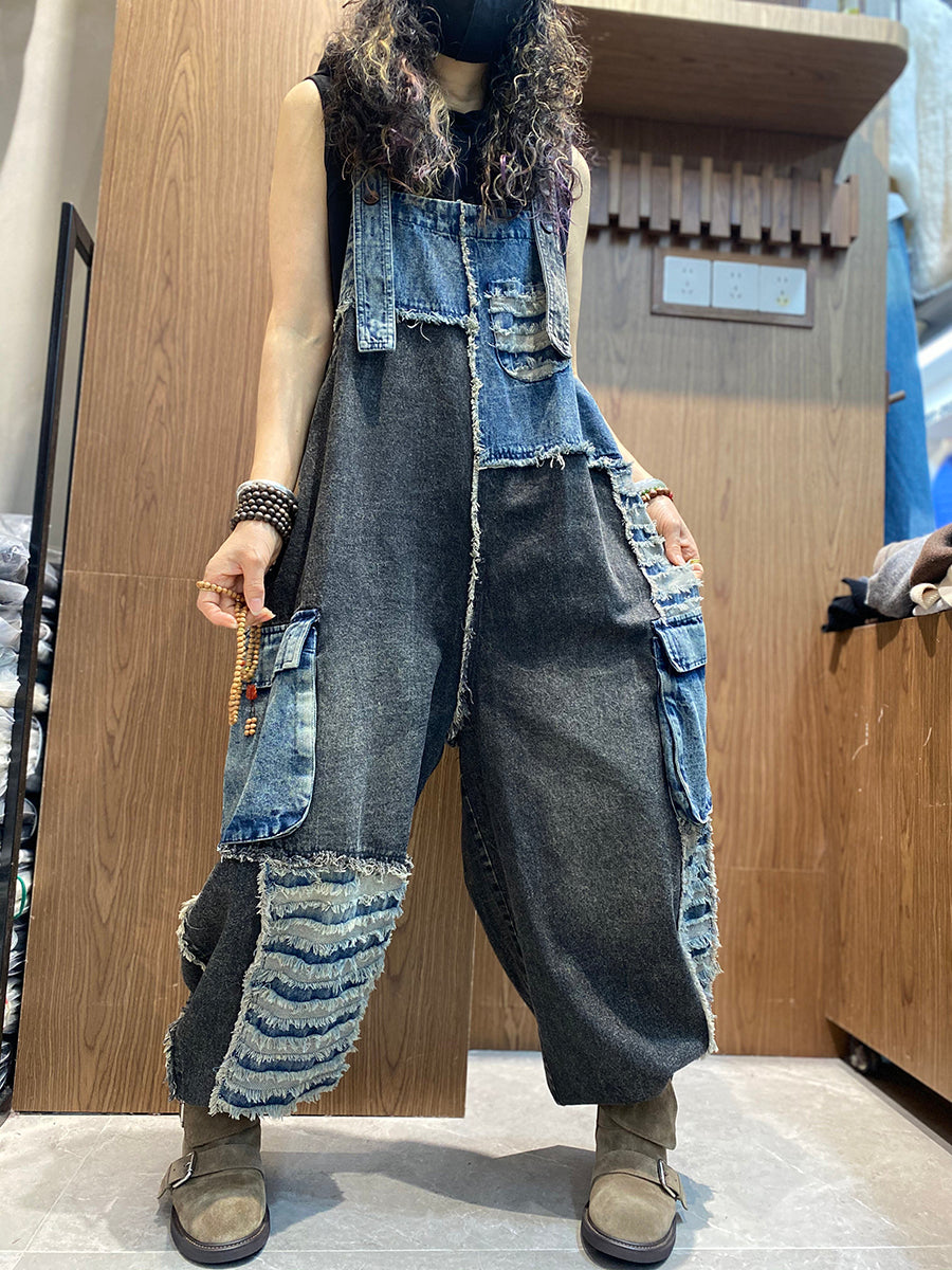 Women Spring Retro Patchwork Denim Jumpsuits