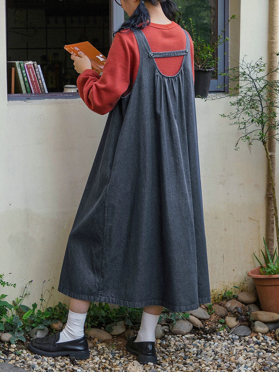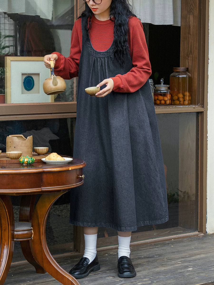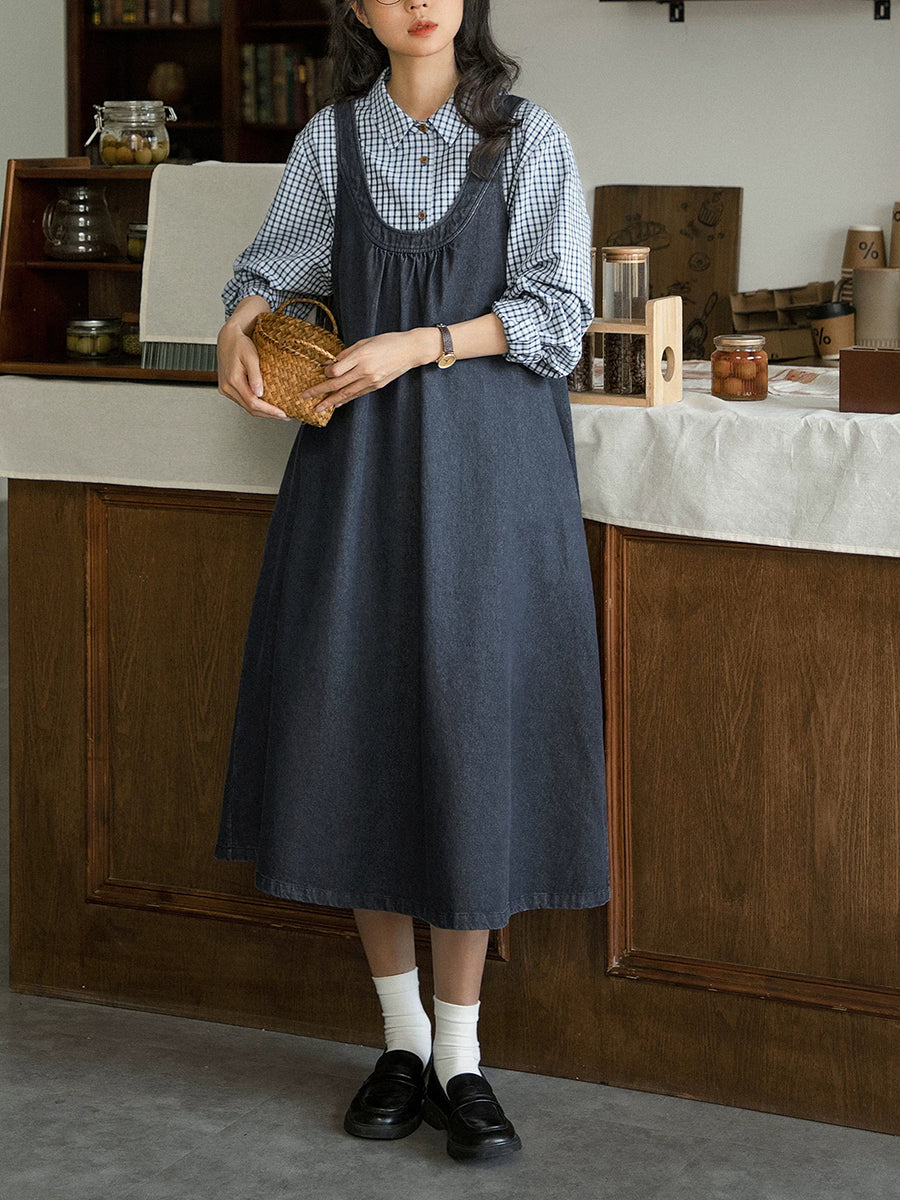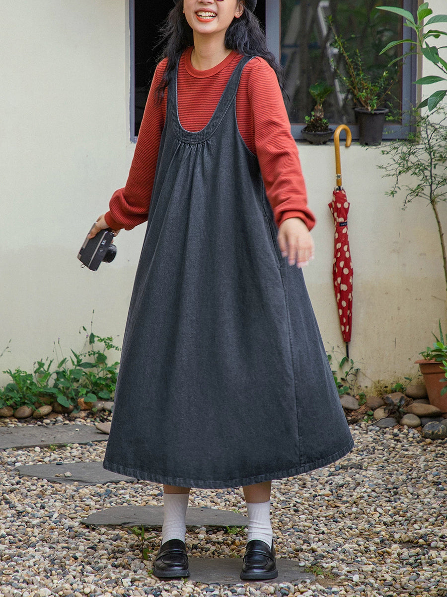 Crafted from premium 100% cotton, this ankle-length denim overall dress combines timeless retro aesthetics with versatile solid coloring. Designed for transitional seasons, it transitions seamlessly from spring through autumn, offering both comfort and enduring style. The classic overall silhouette delivers practical functionality while maintaining sophisticated simplicity.