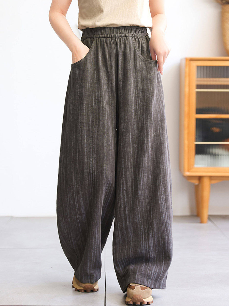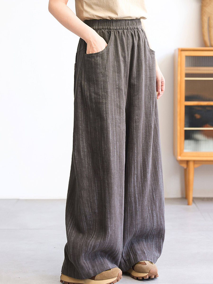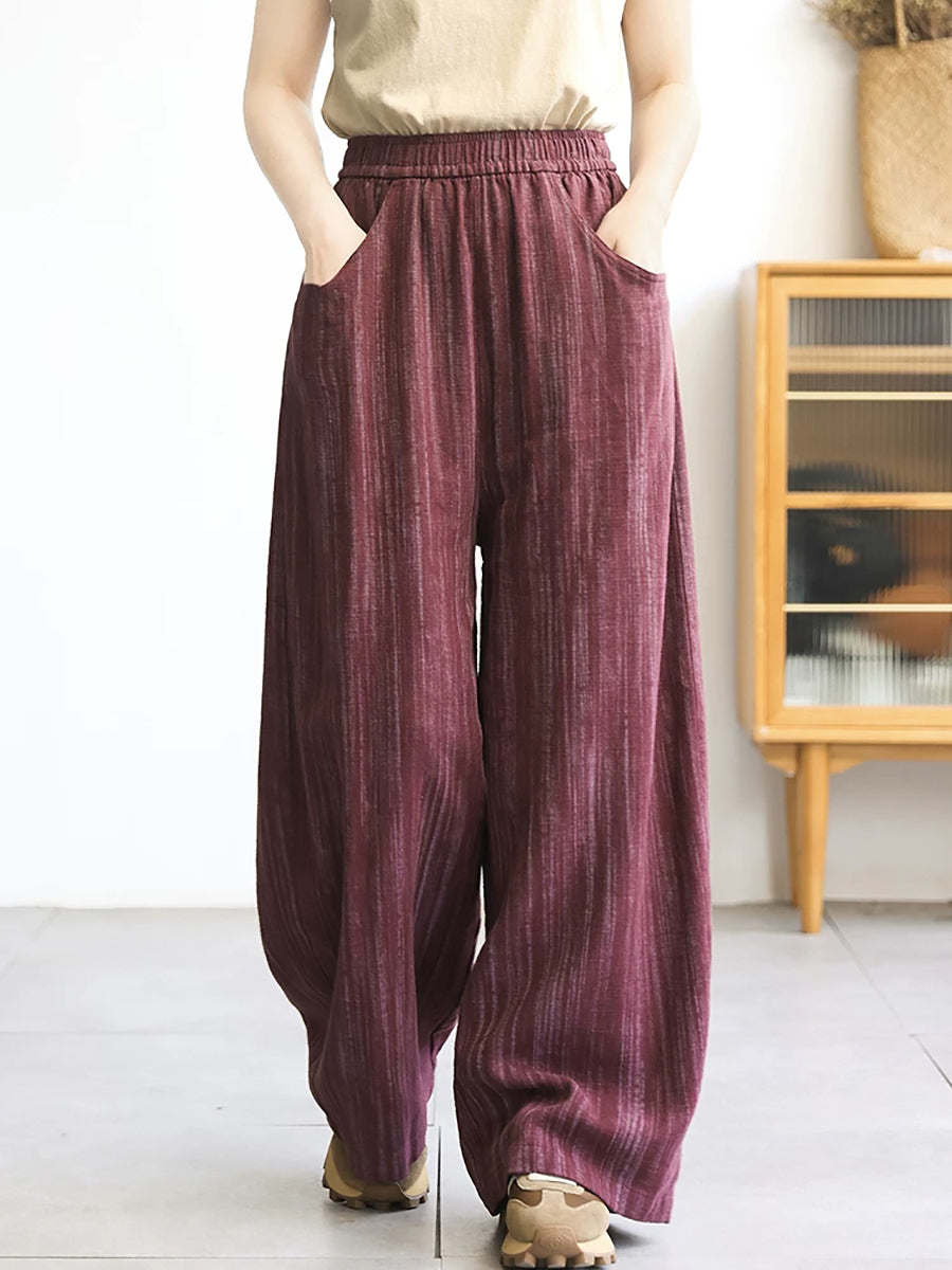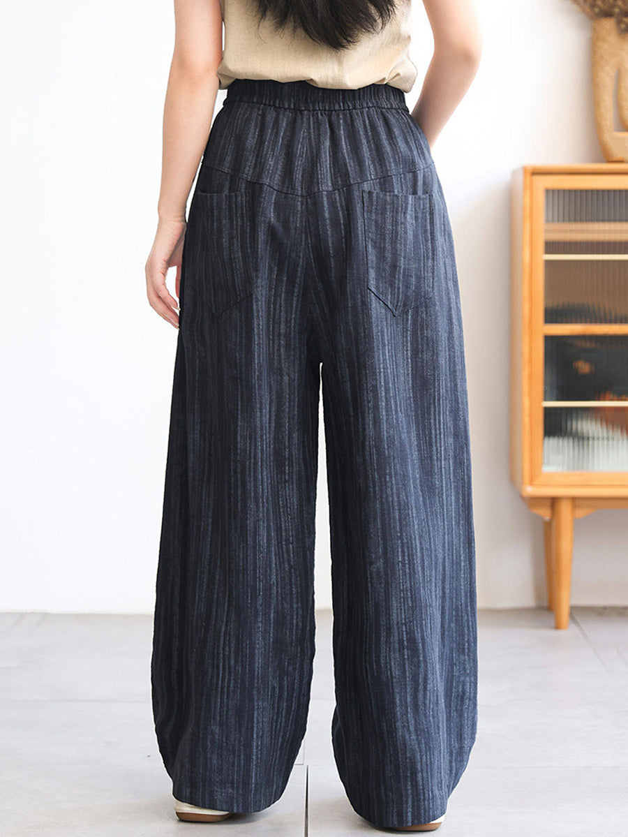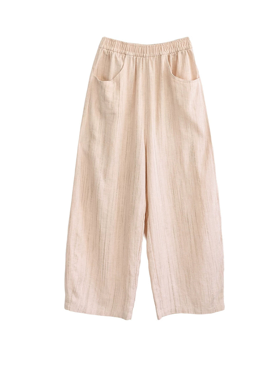 Women Spring Stripe 100%Linen Straight Pants