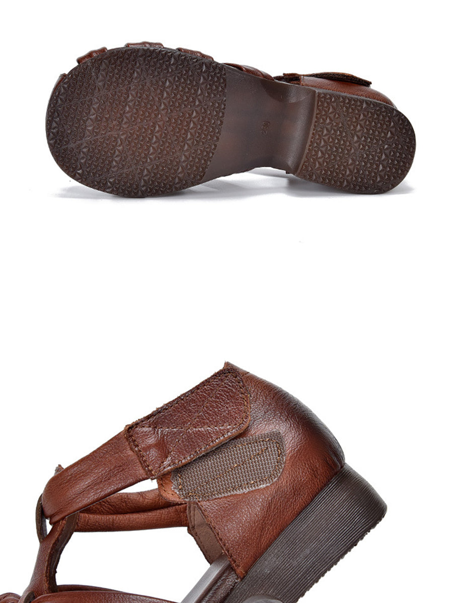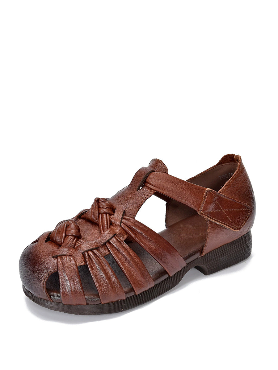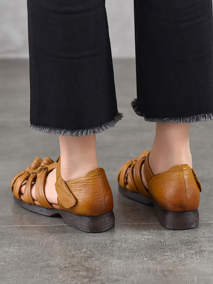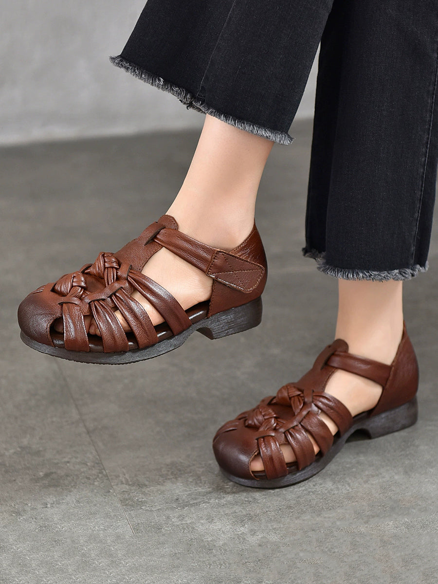Women Summe Genuine Leather Weave Low Heel Sandals