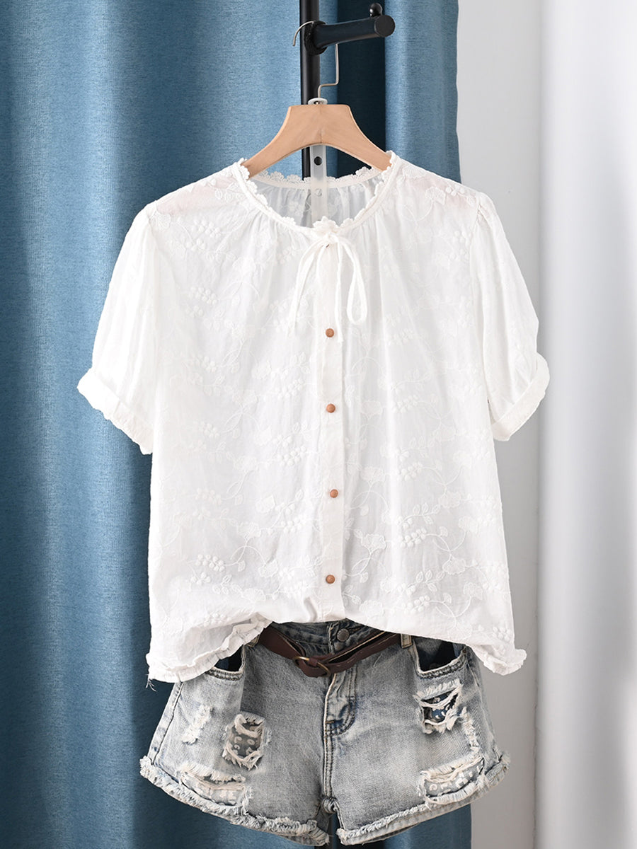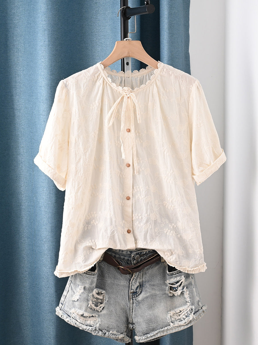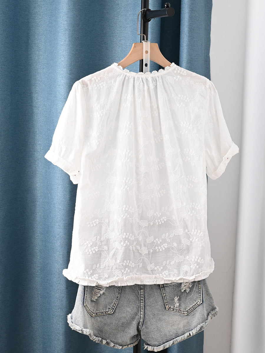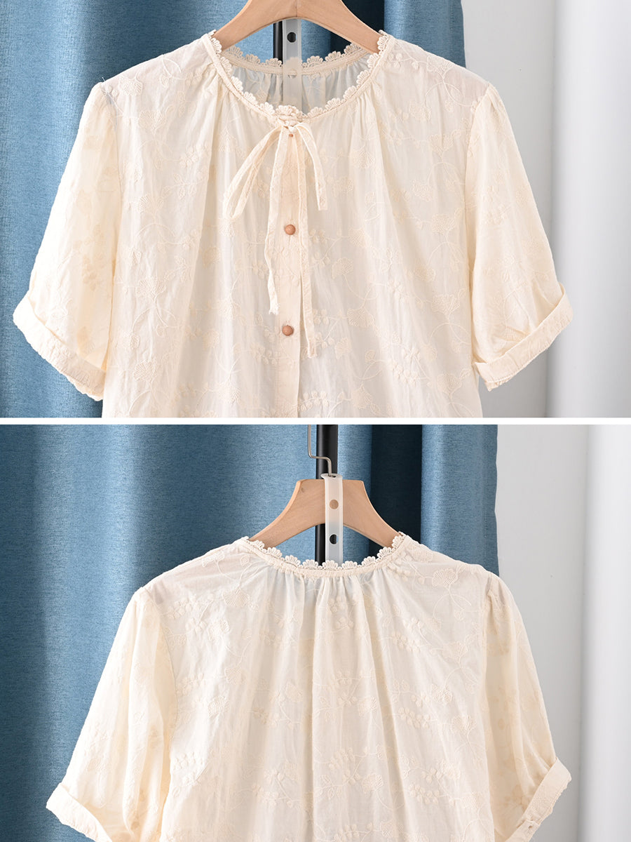 Women Summer Artsy Embroidery 100%Cotton Blouse