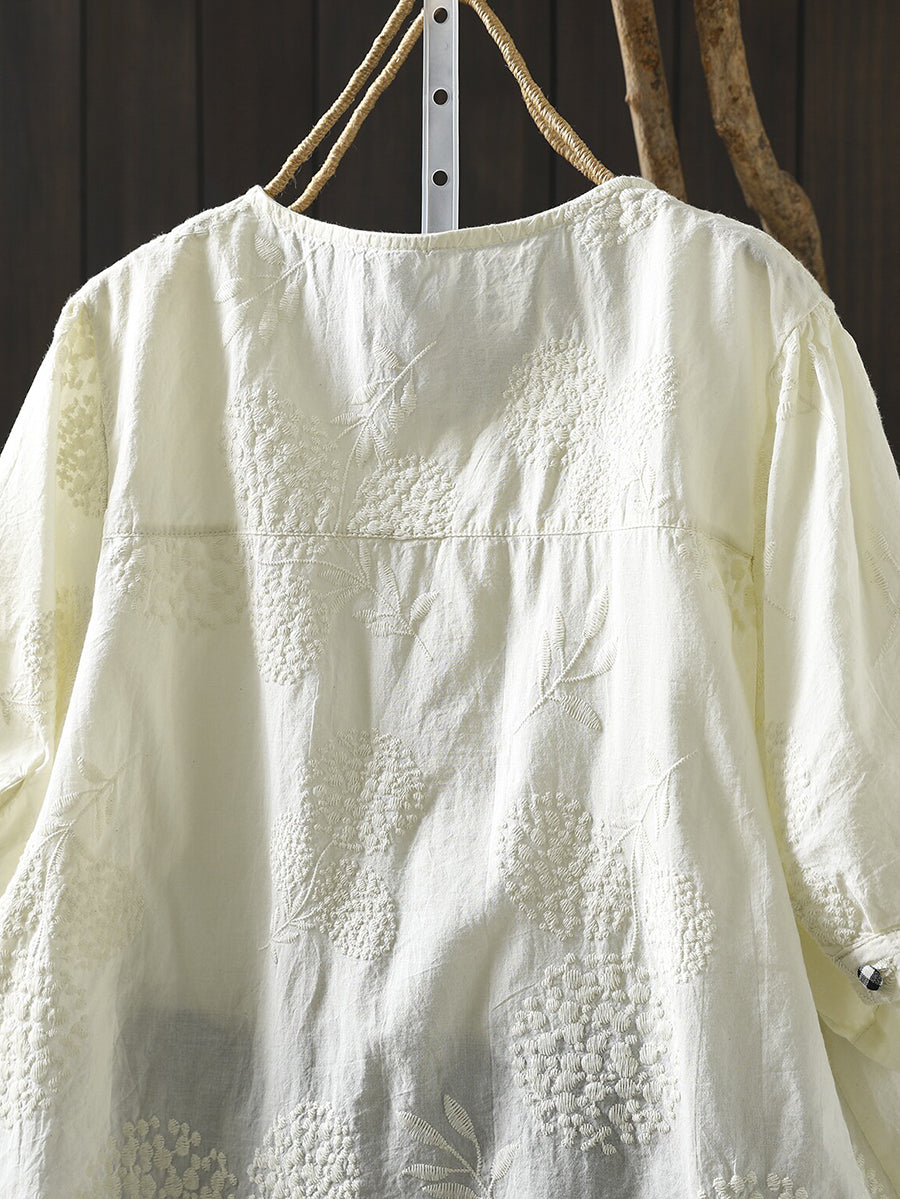 Women Summer Artsy Embroidery O-Neck 100%Cotton Blouse
