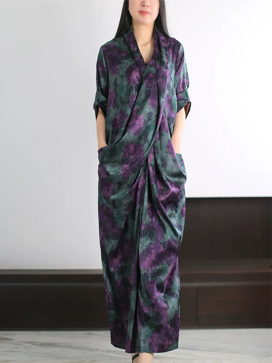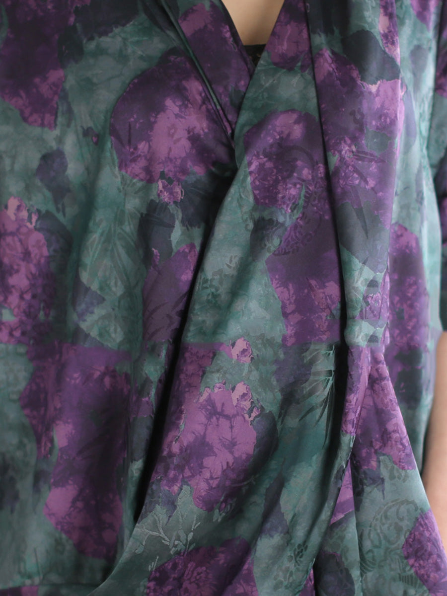 Women Summer Artsy Flower Spliced V-Neck Dress