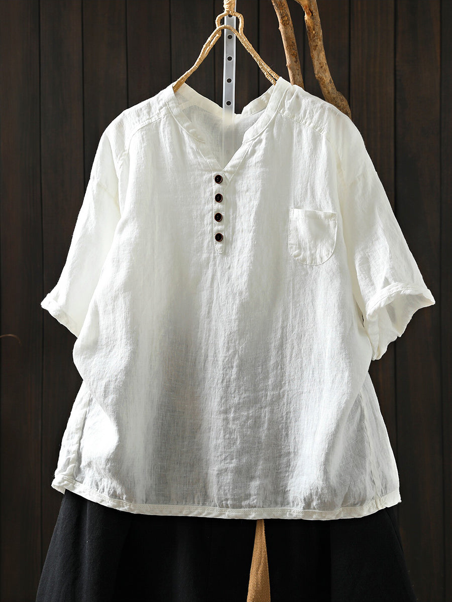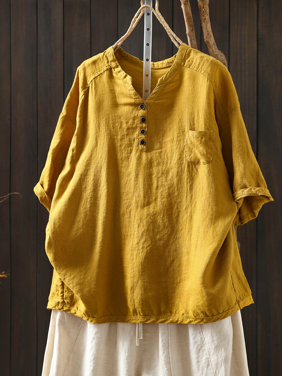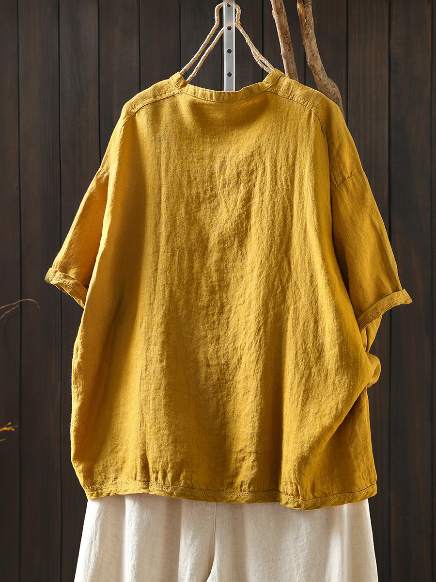 Women Summer Artsy Pure Color 100%Linen Blouse