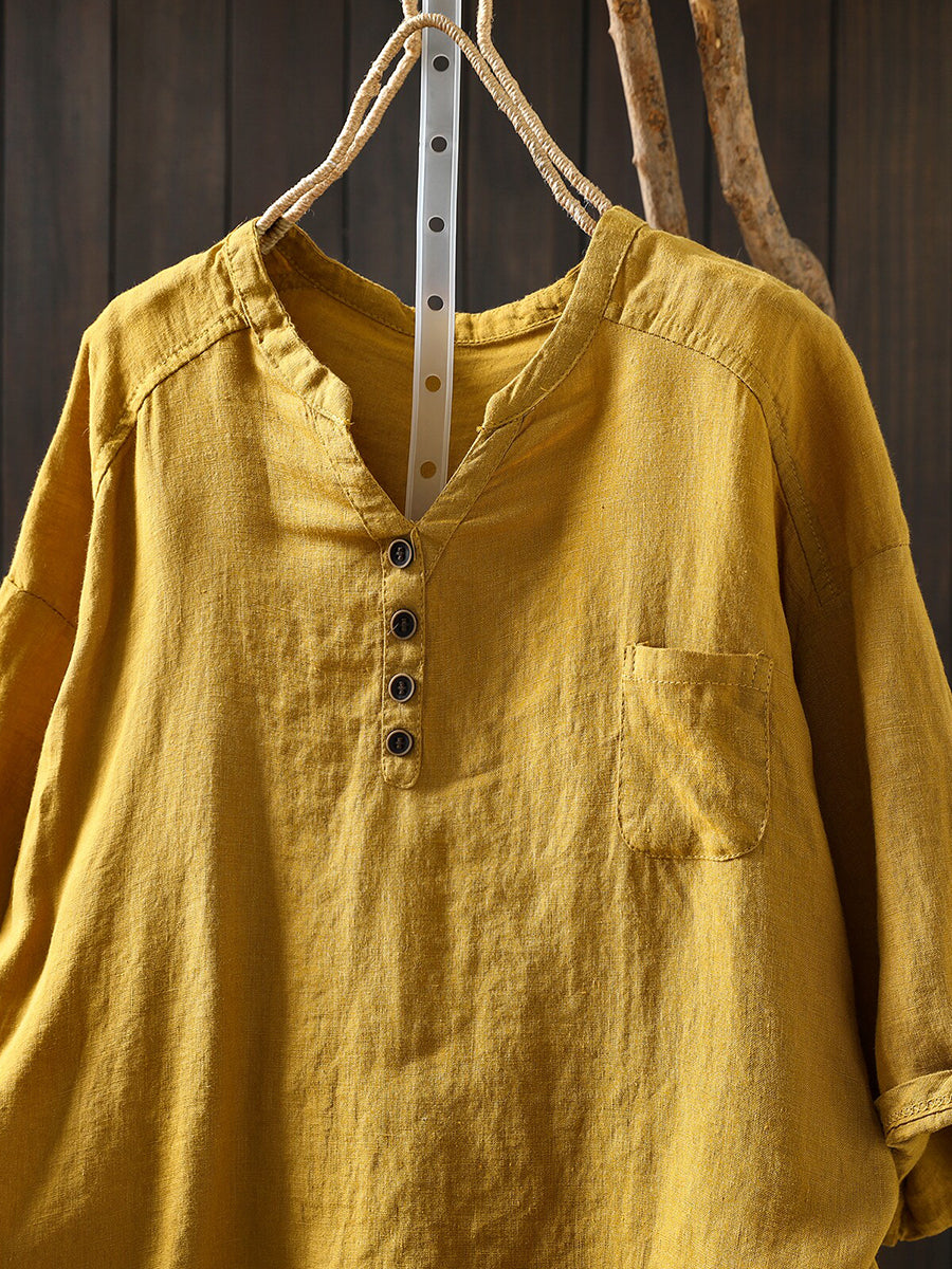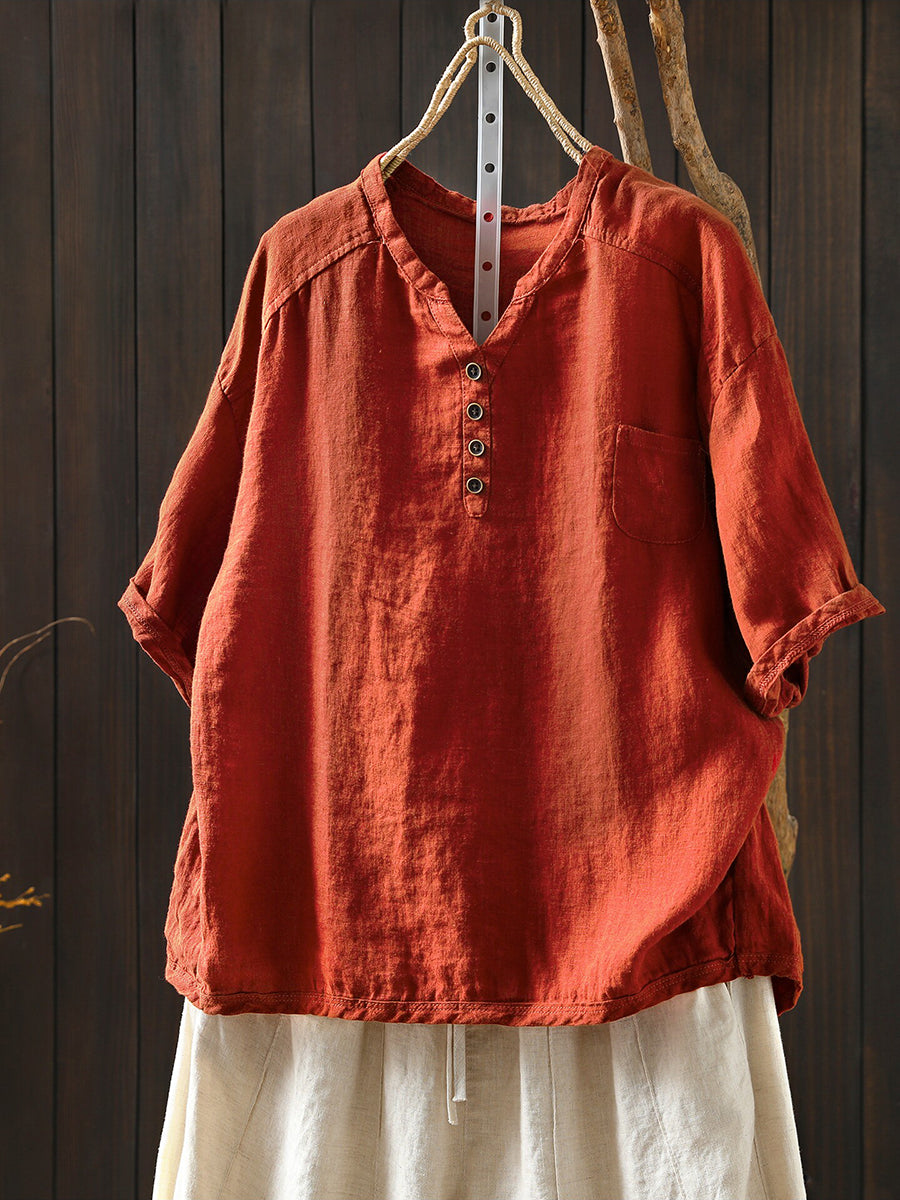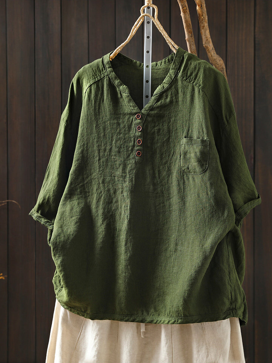 Women Summer Artsy Pure Color 100%Linen Blouse