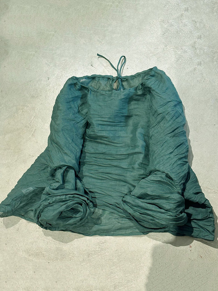 Women Summer Artsy Pure Color O-Neck Ramie Shirt