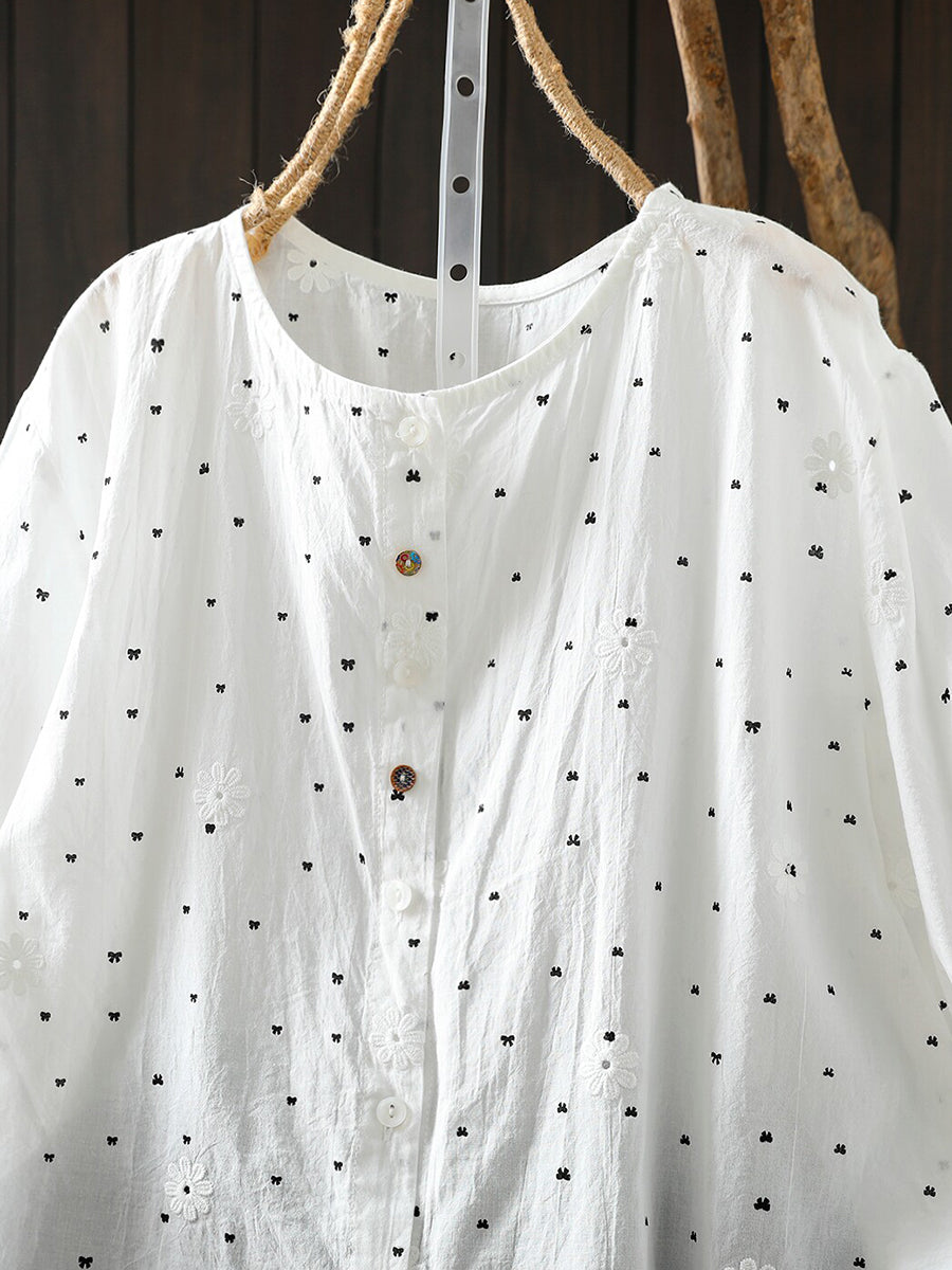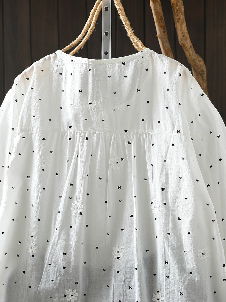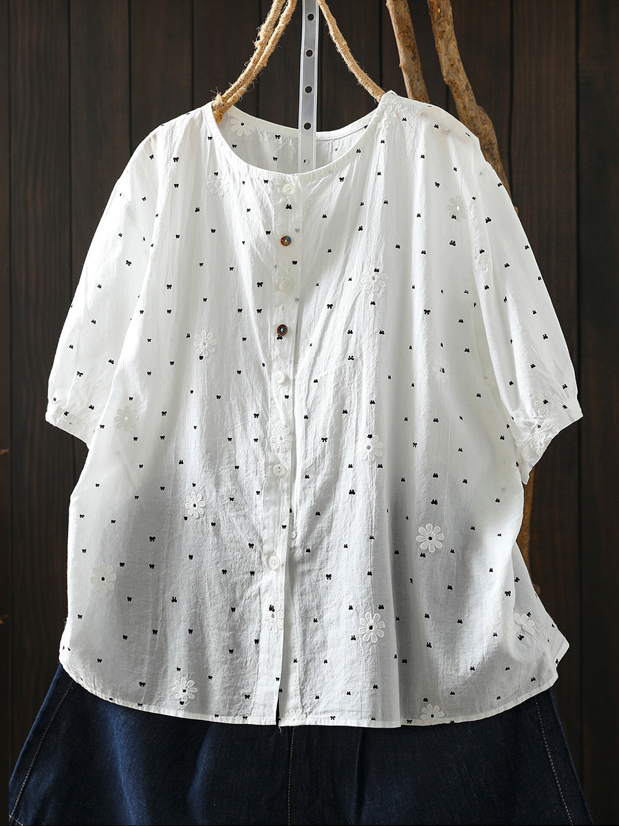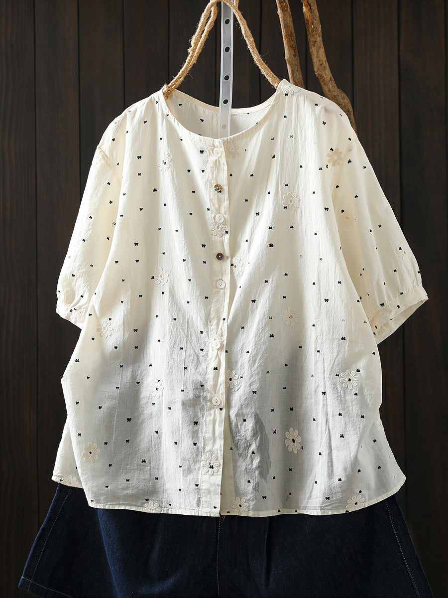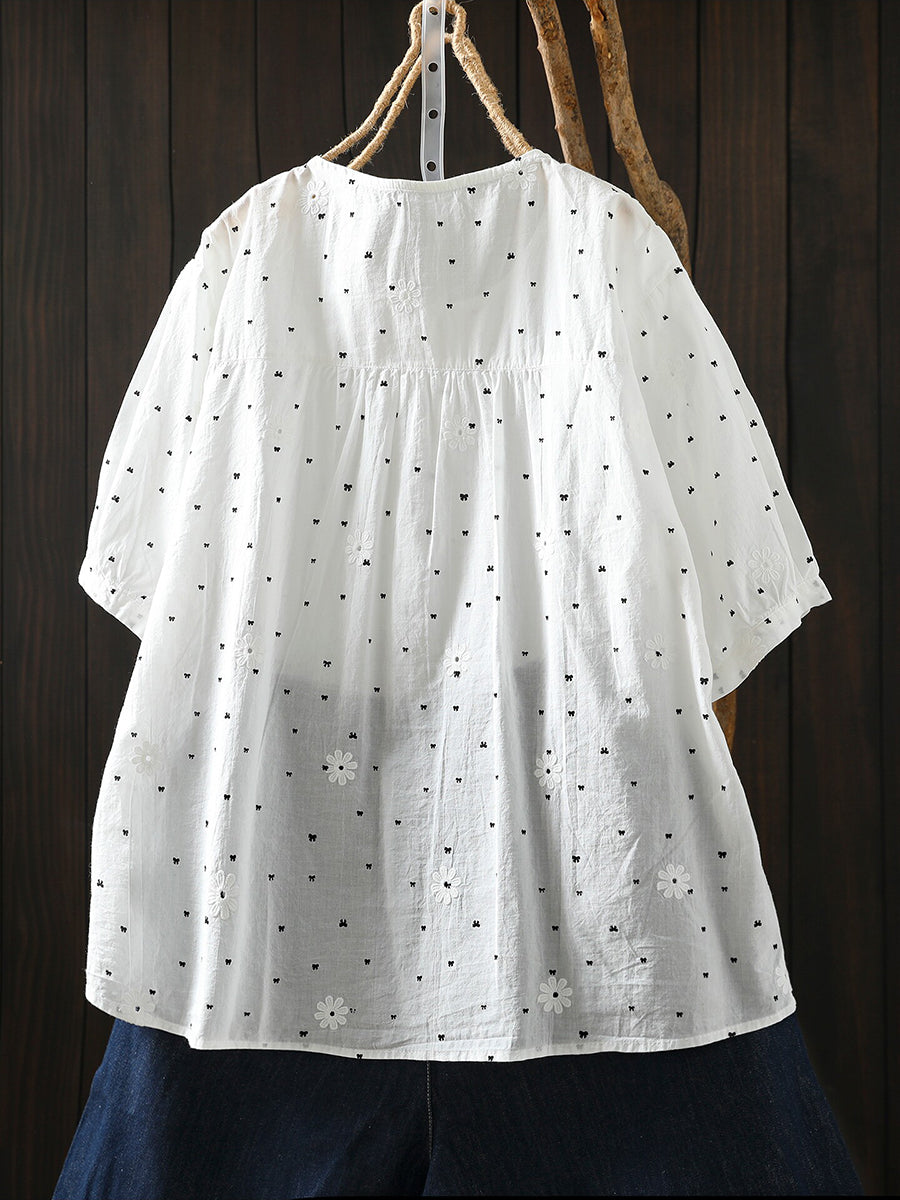 Women Summer Bowknot Embroidery 100%Cotton T-Shirt