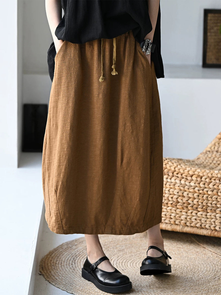 Women Summer Casual Pure Color 100%Cotton Skirt