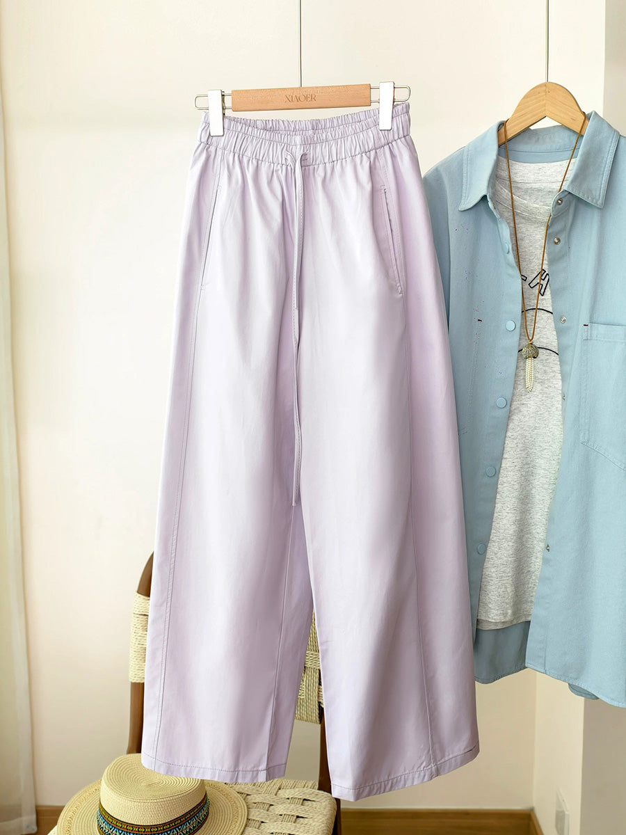 Women Summer Casual Pure Color 100%Cotton Straight Pants