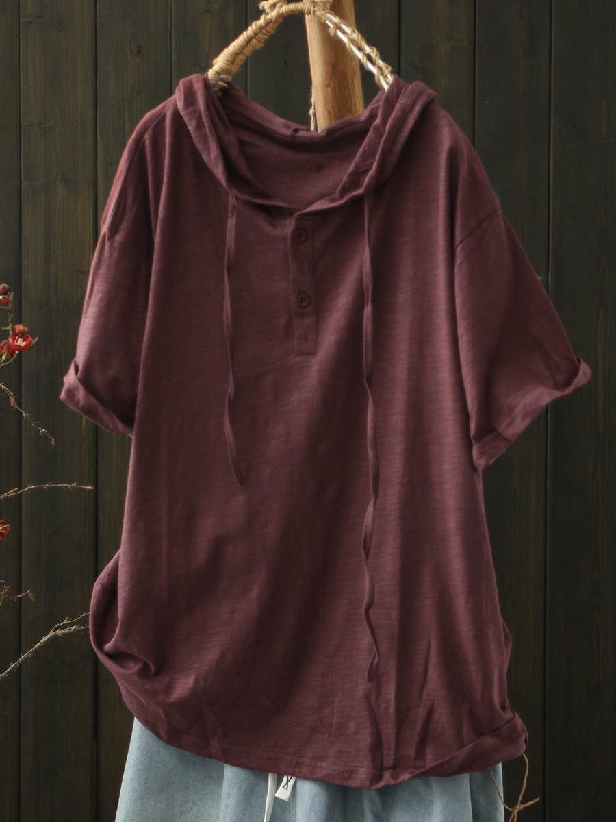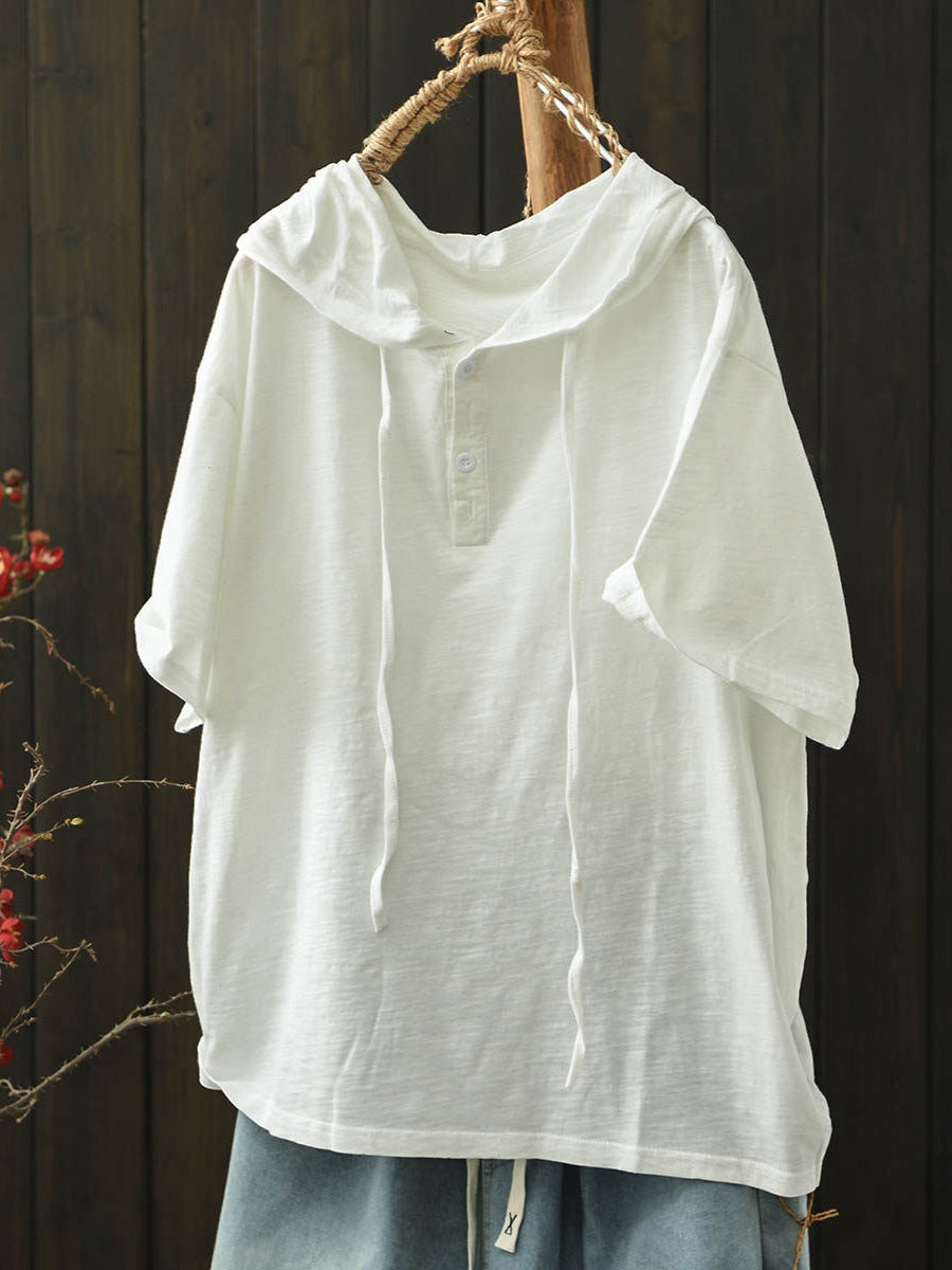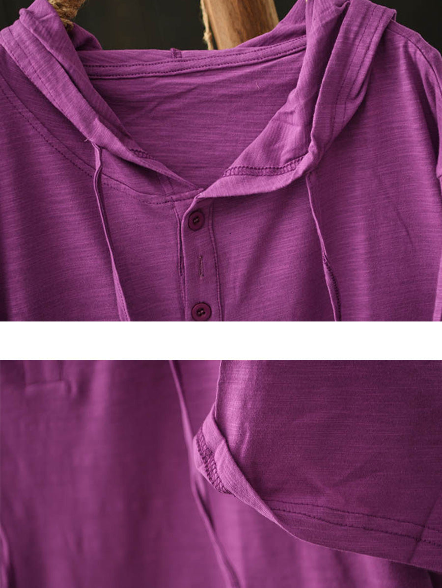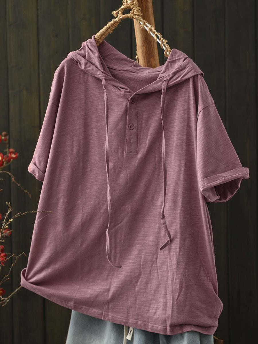 Women Summer Casual Pure Color Cotton Hooded