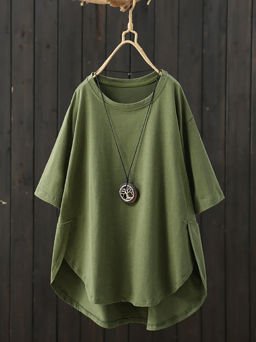 Plus Size Women Summer Casual Pure Color O-Neck T-Shirt