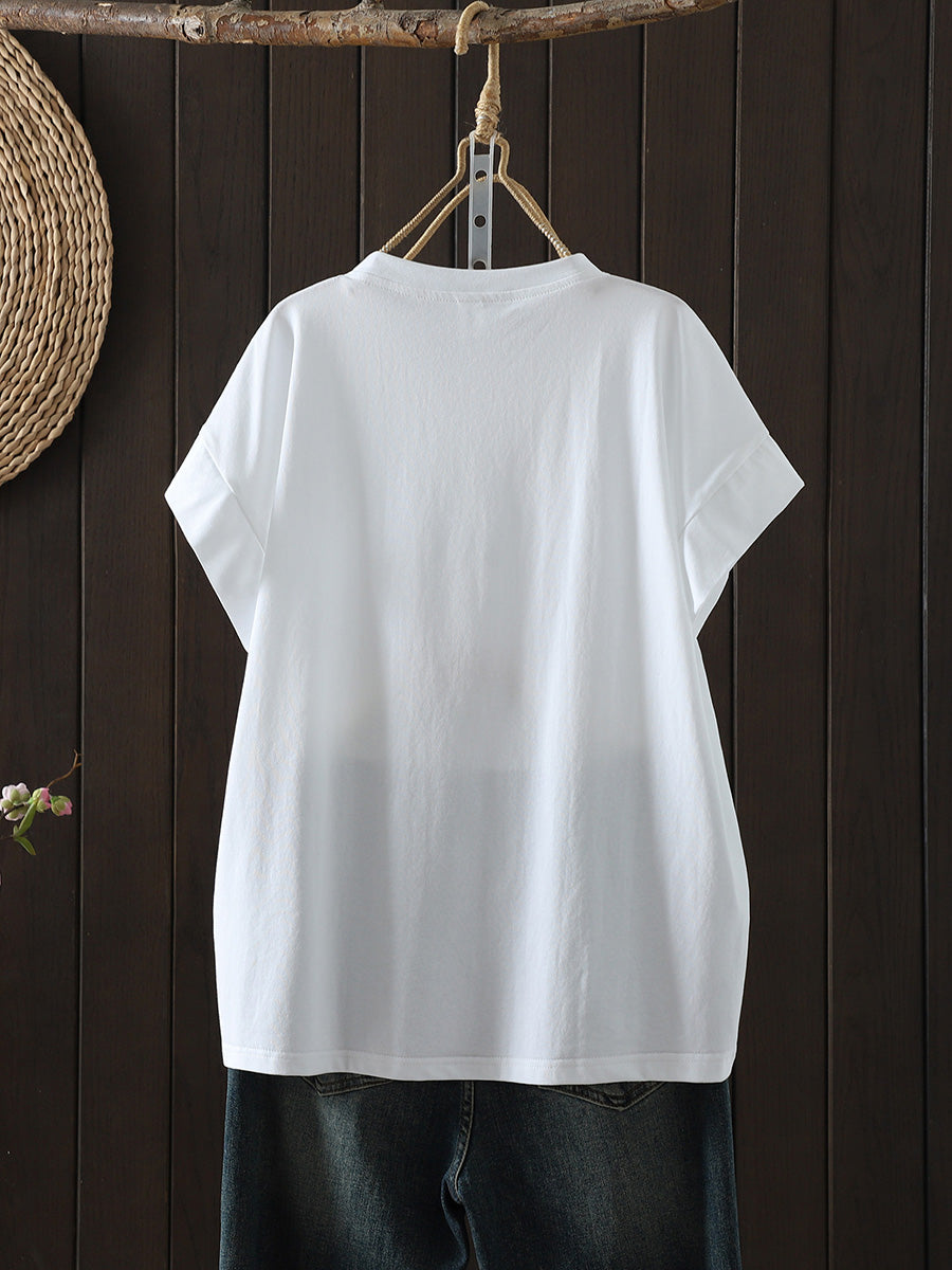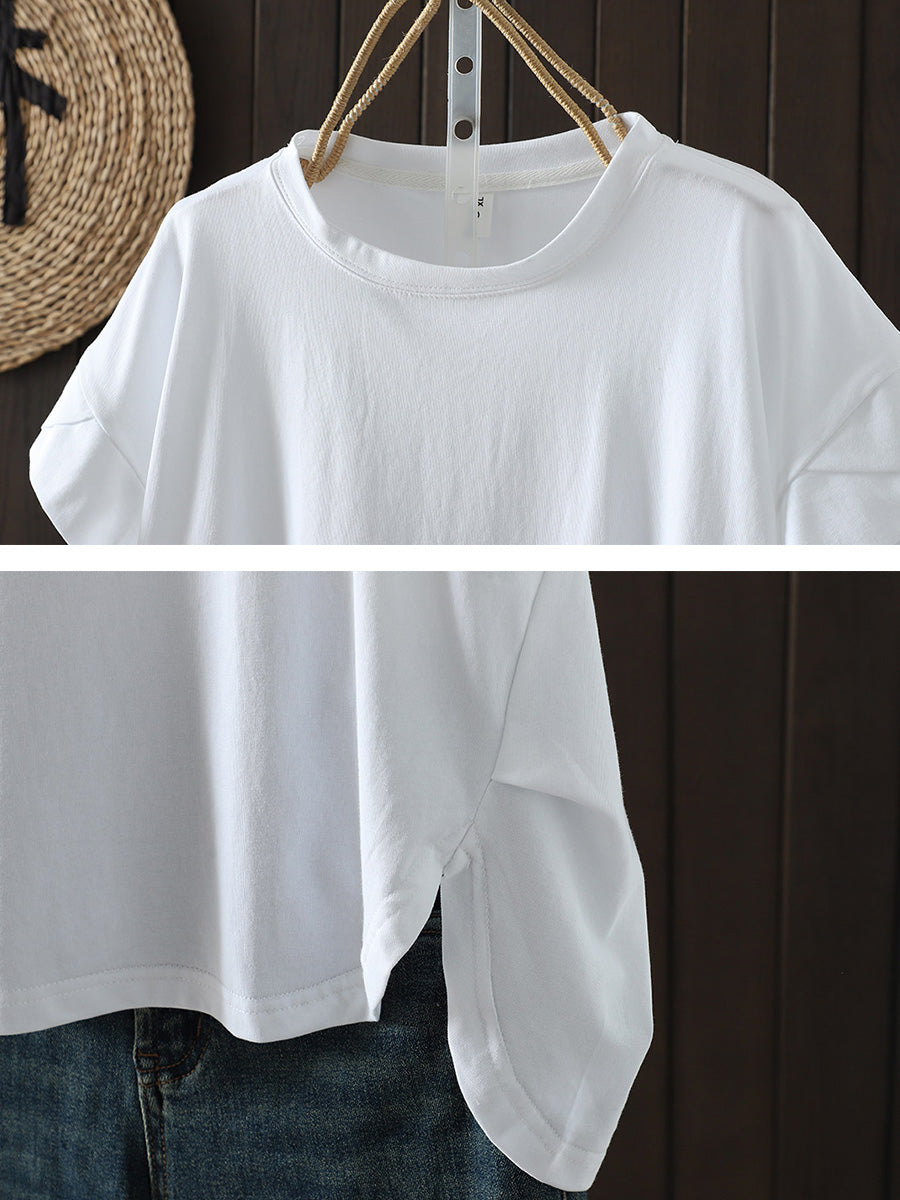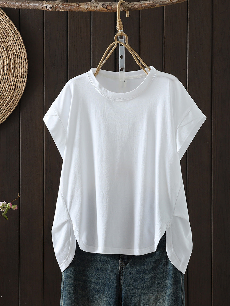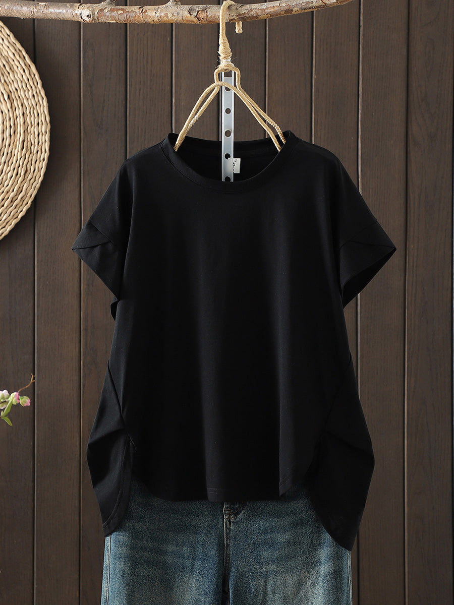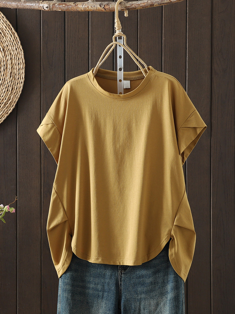 Women Summer Casual Pure Color O-Neck T-Shirt