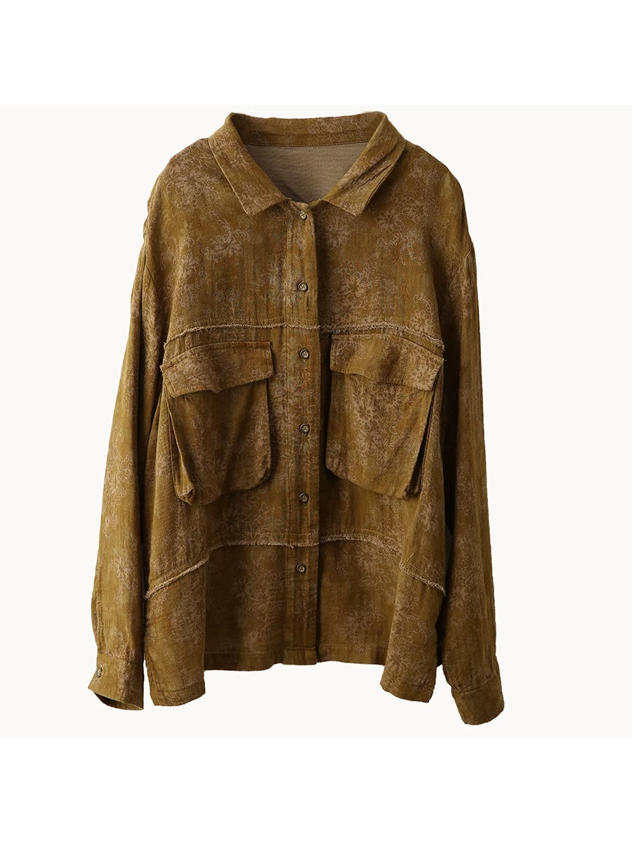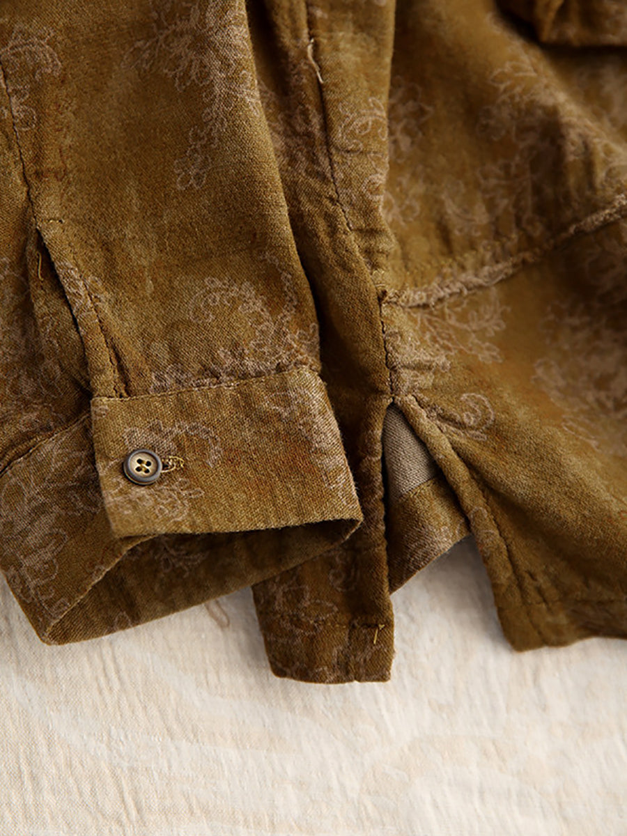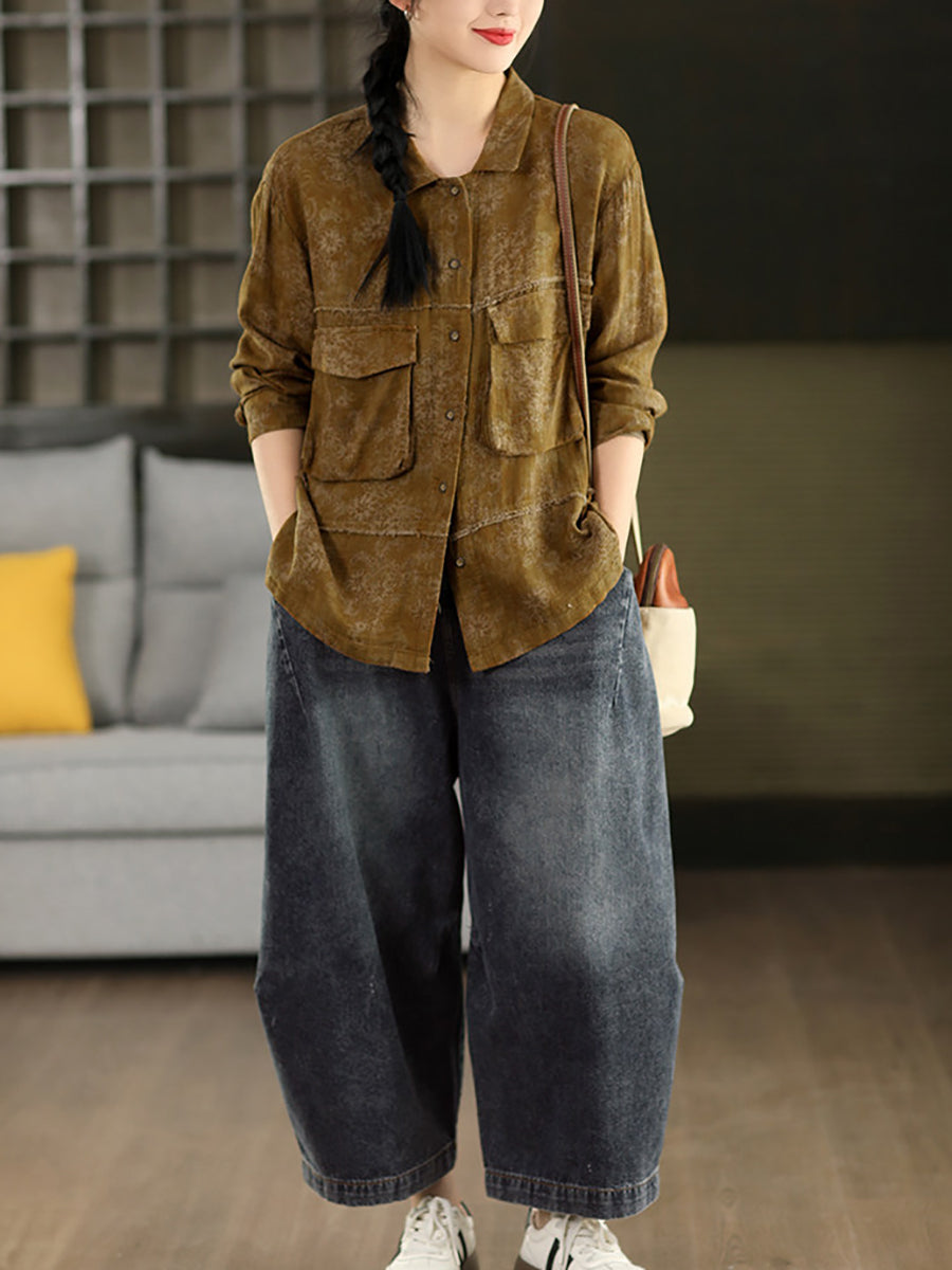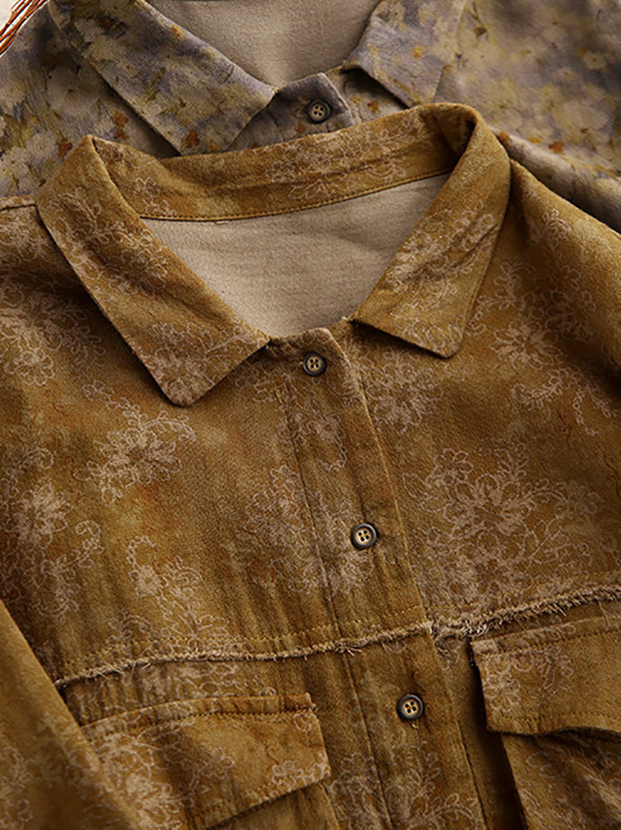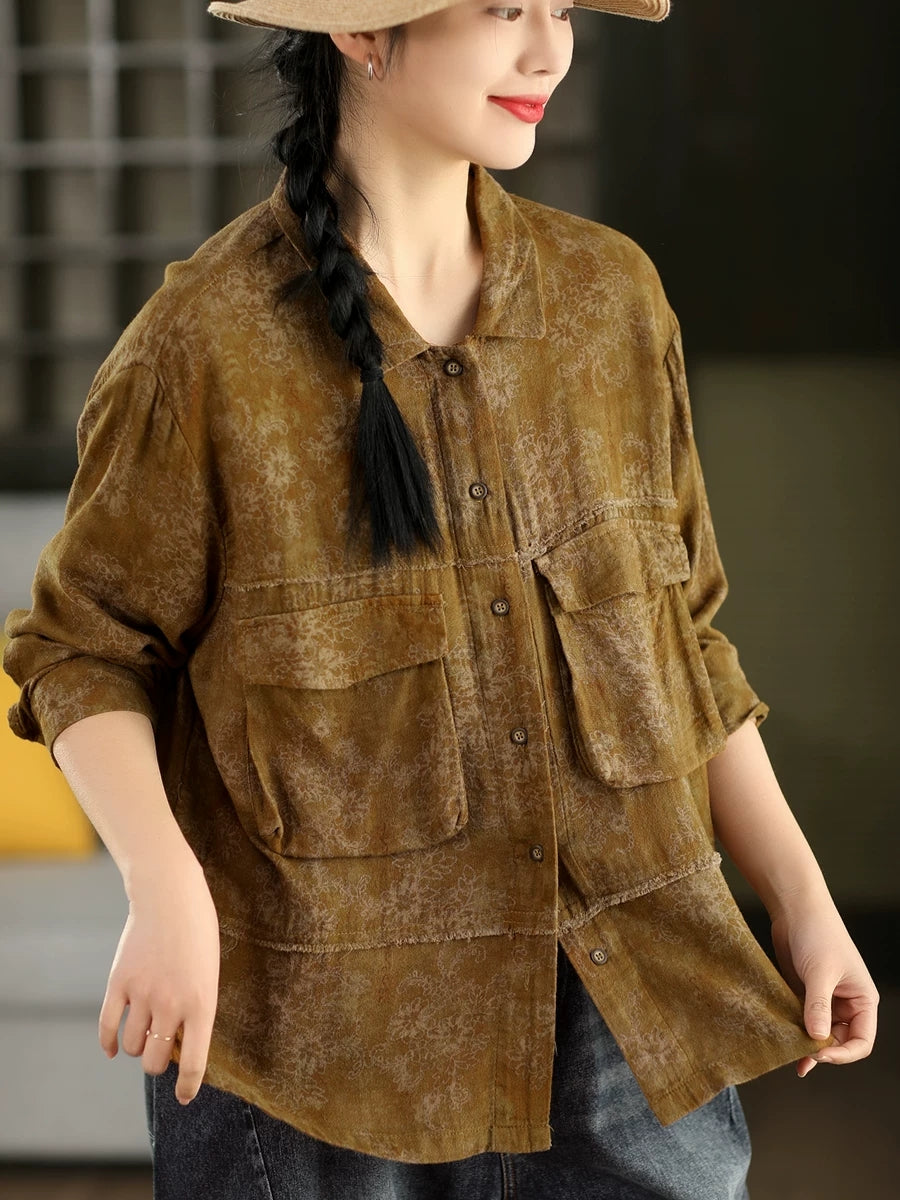 Women Summer Flower Turn-down Collar 100%Cotton Shirt