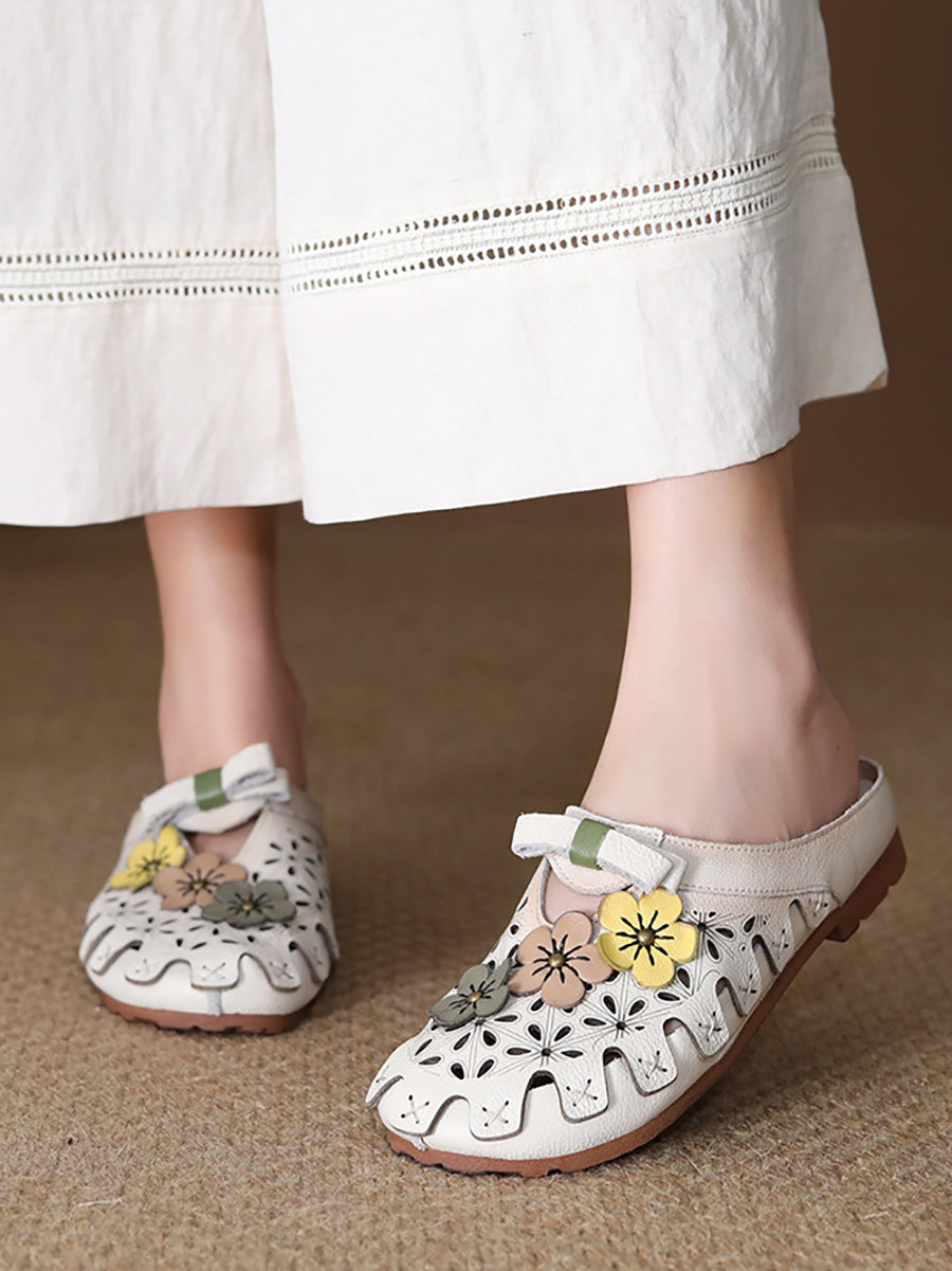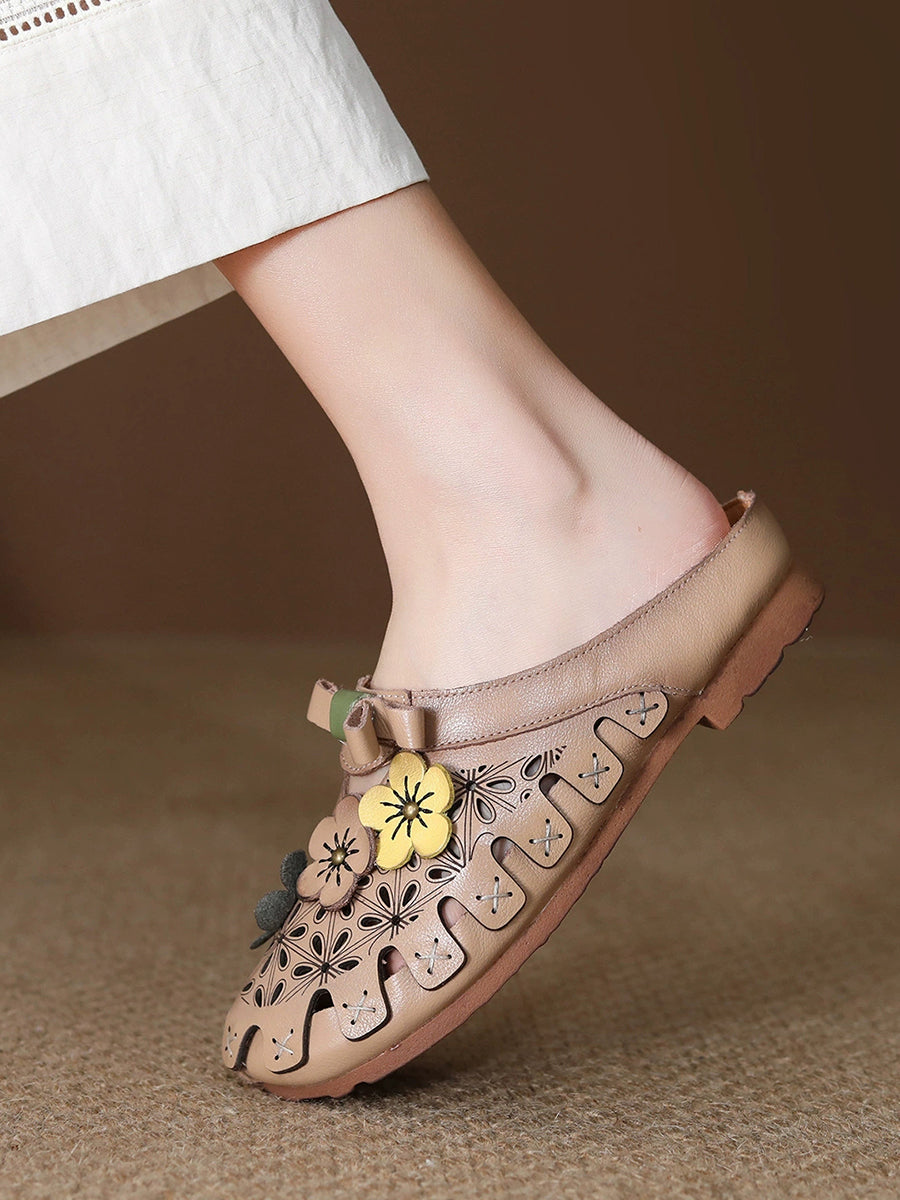 Women Summer Genuine Leather Spliced Slippers