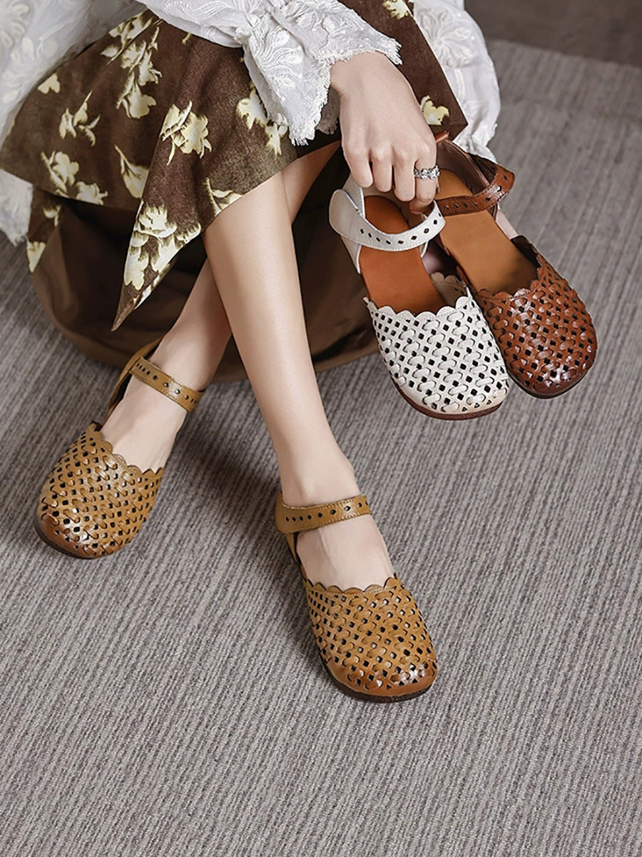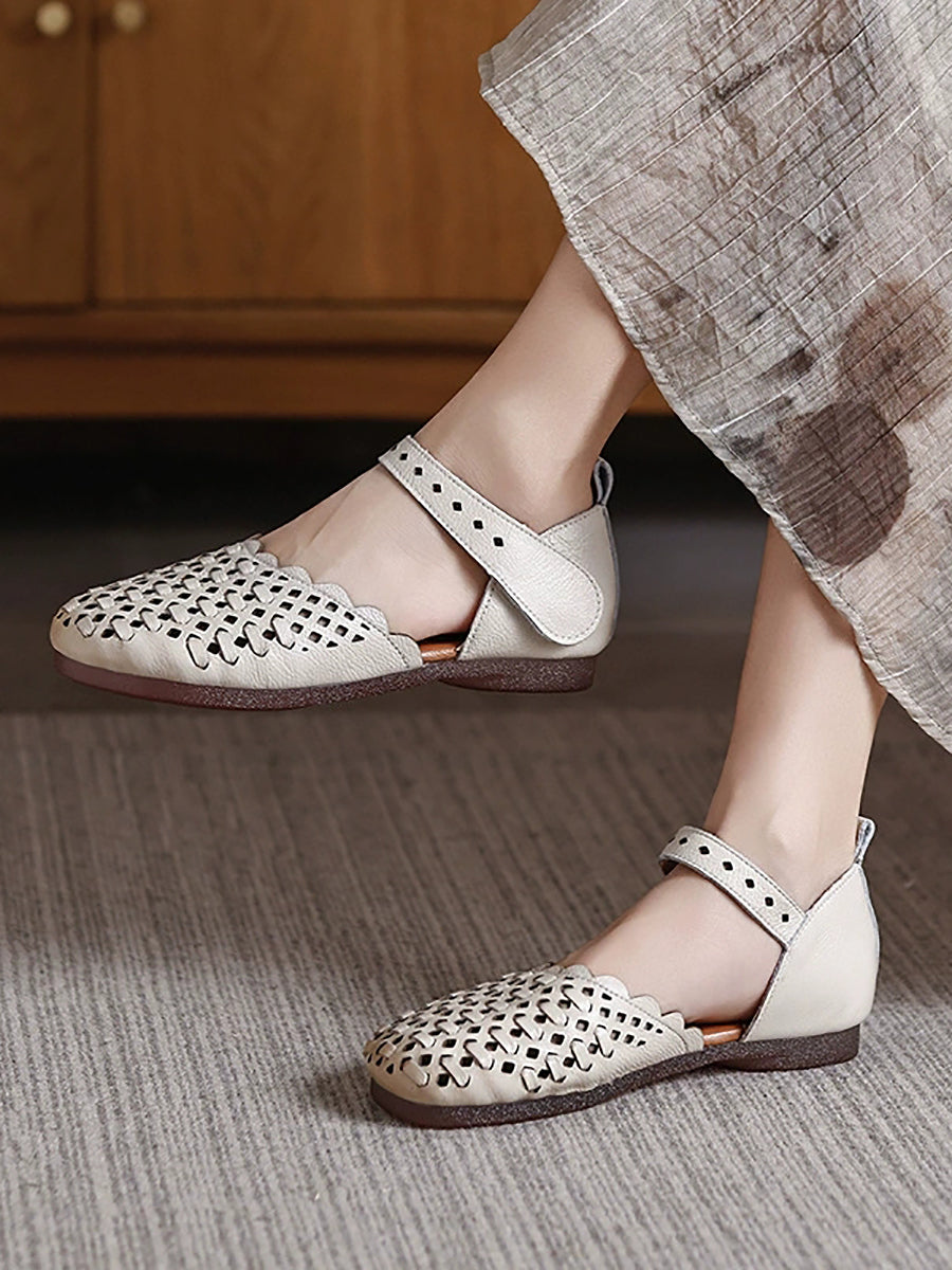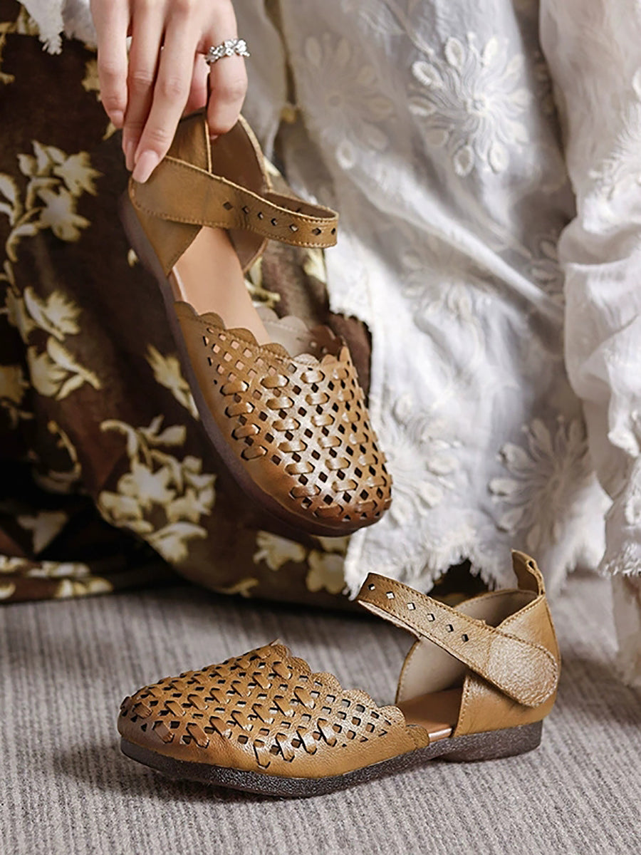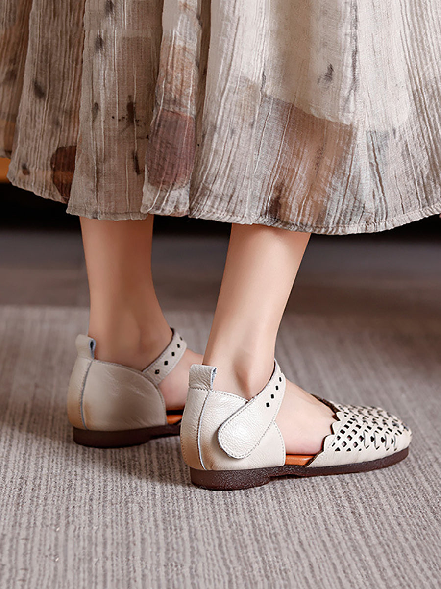 Women Summer Genuine Leather Weave Sandals