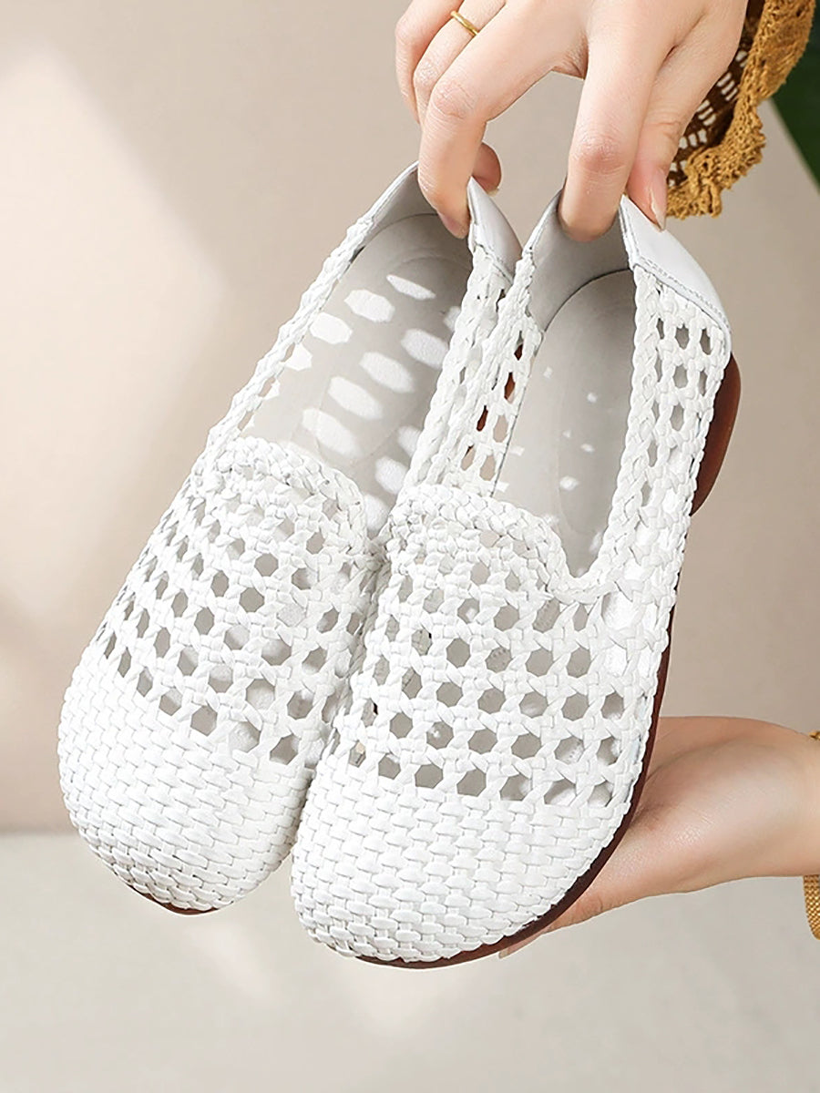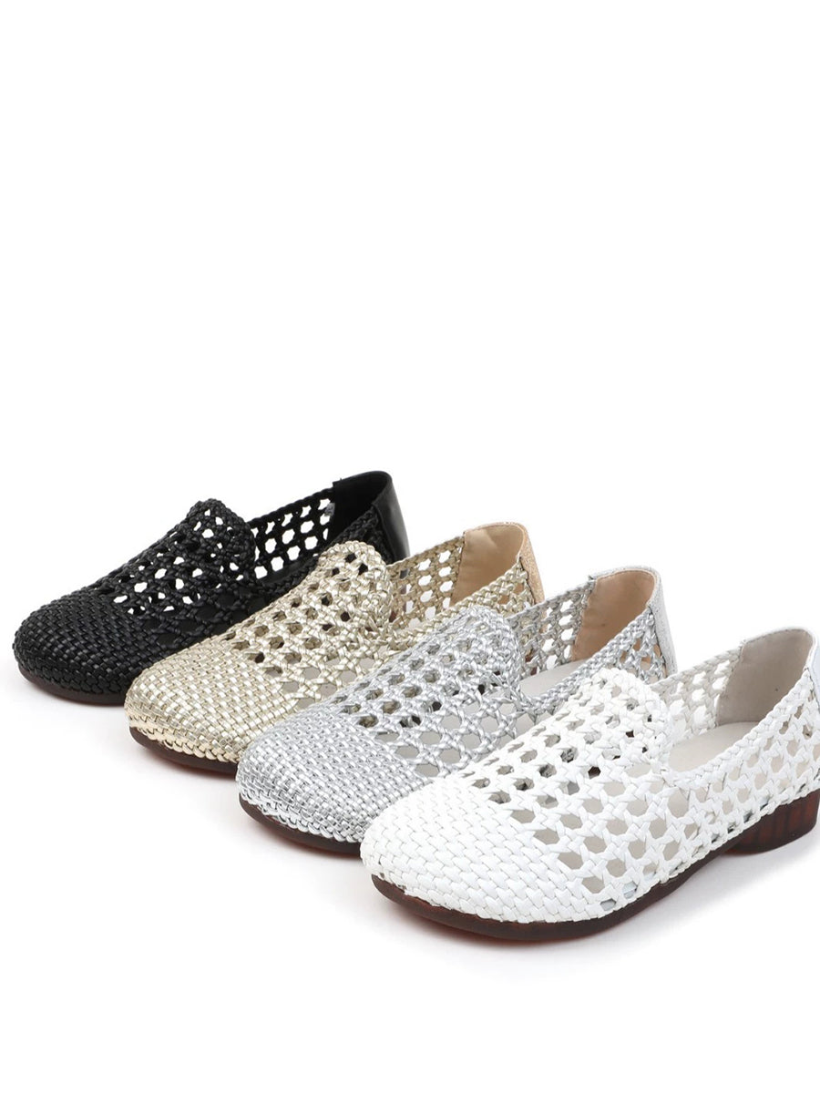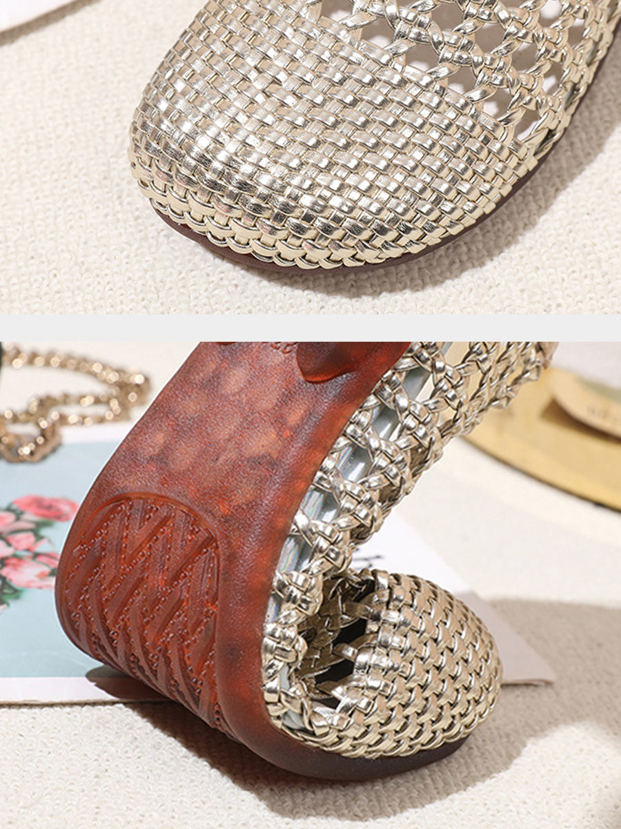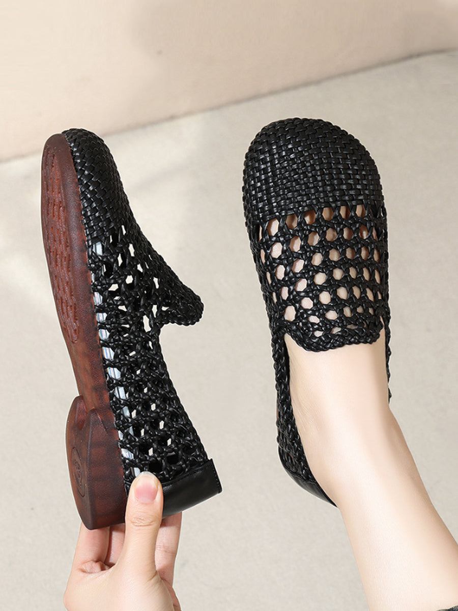 Women Summer Hole Leather Weave Low Heel Sandals