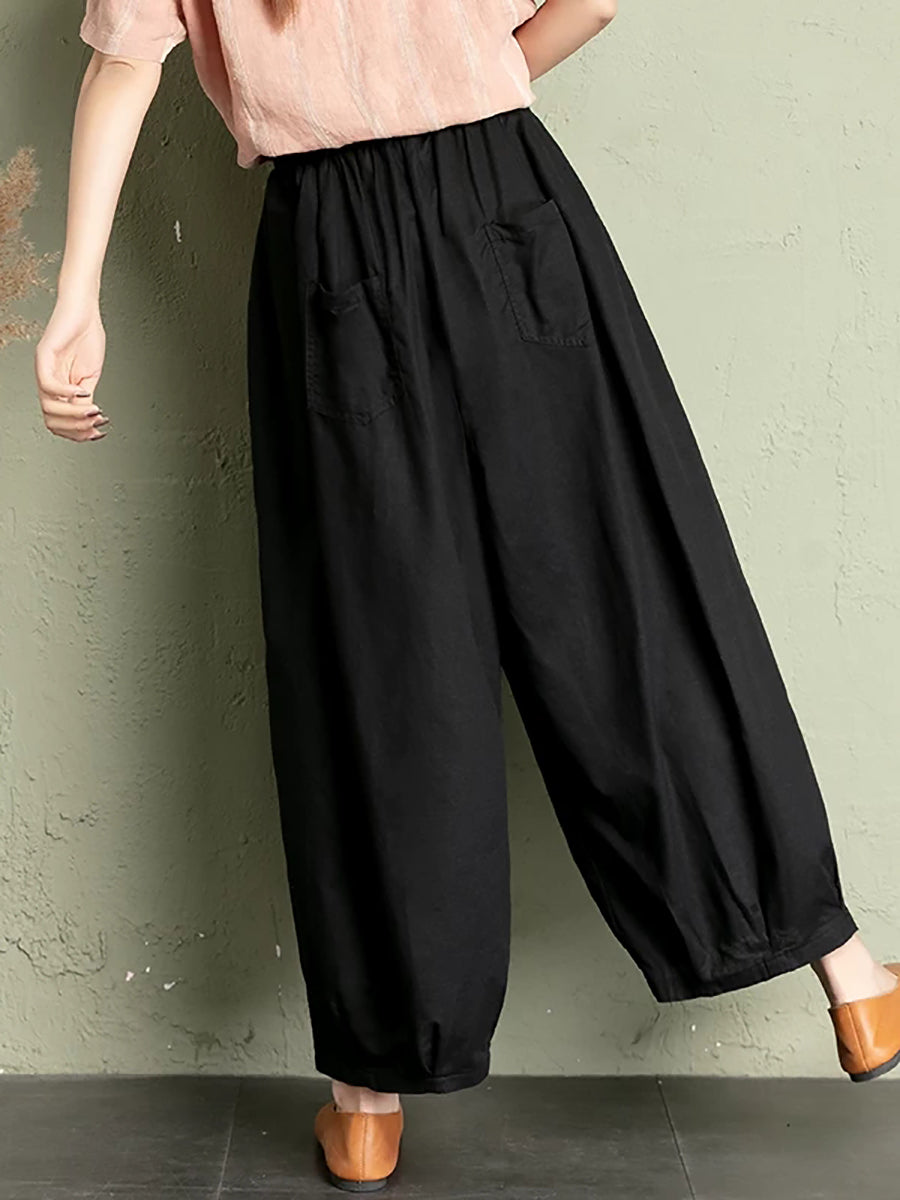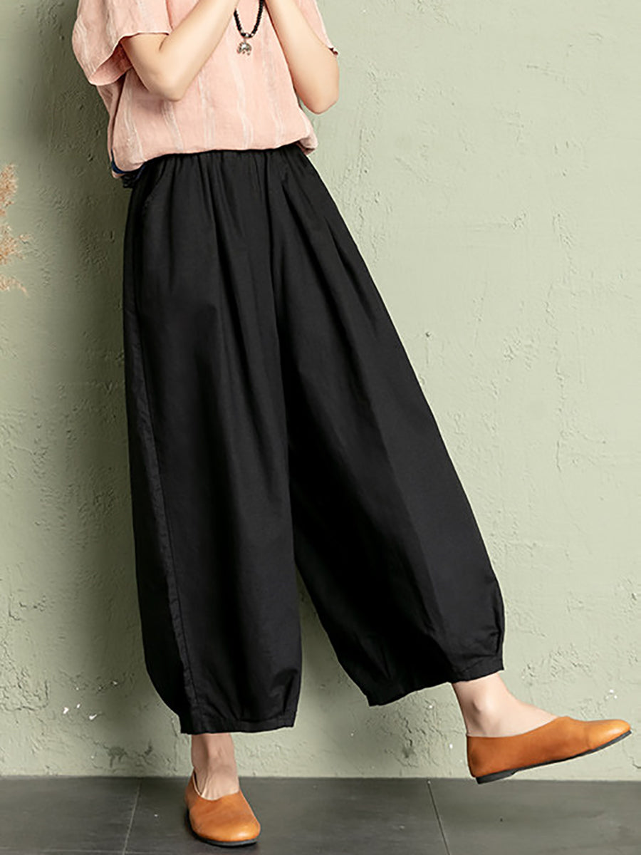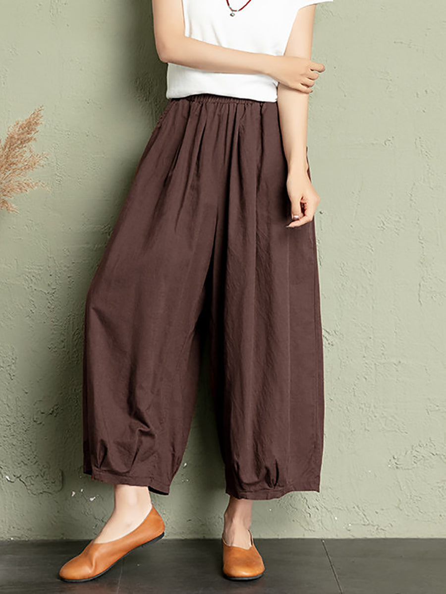 Women Summer Pure Color Cotton Linen Bloomers