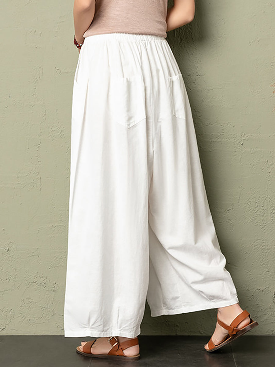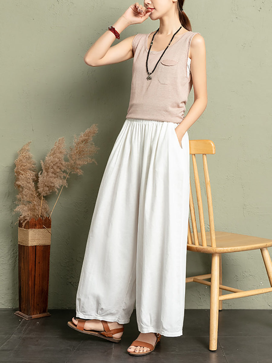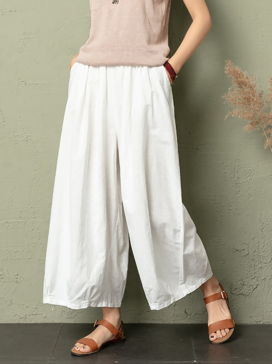 Women Summer Pure Color Cotton Linen Bloomers