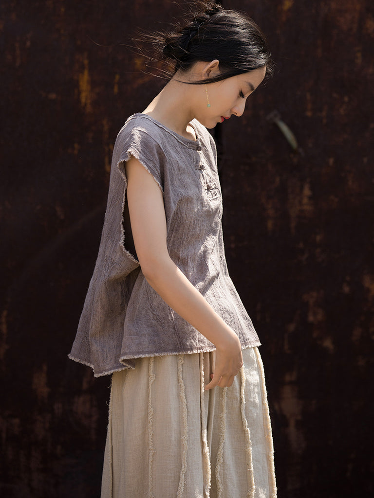 Women Summer Tie-dye Raw-edge Vest