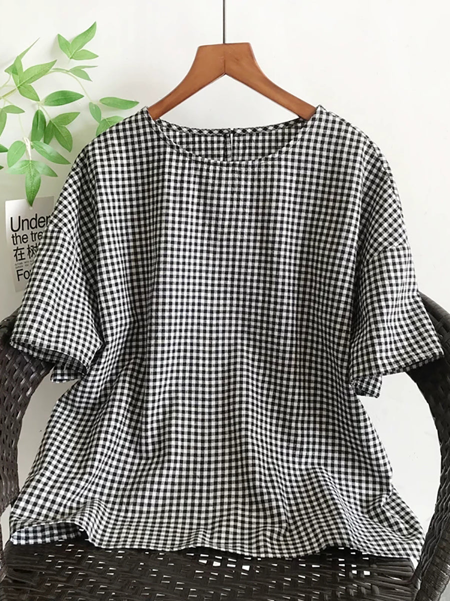 Women Summer Versatile Lattice O-Neck Blouse