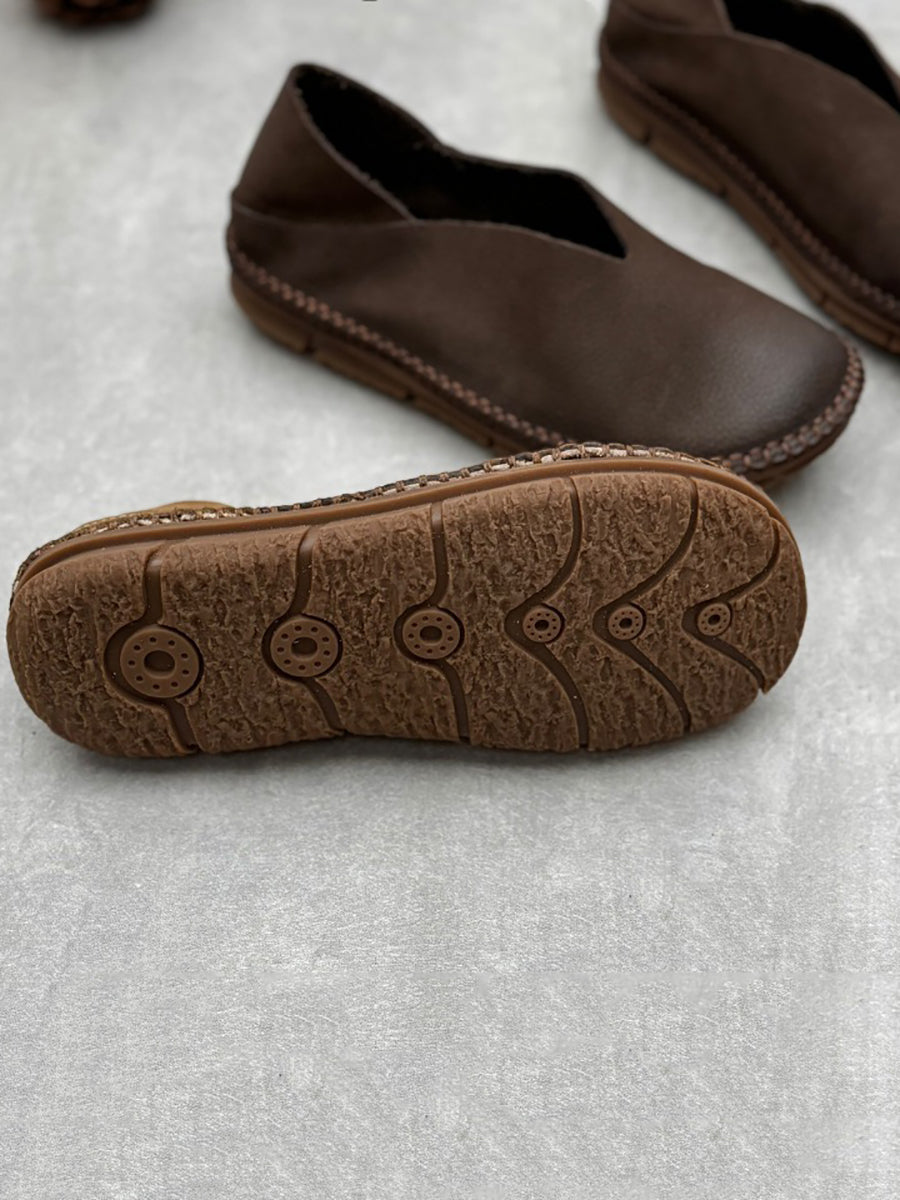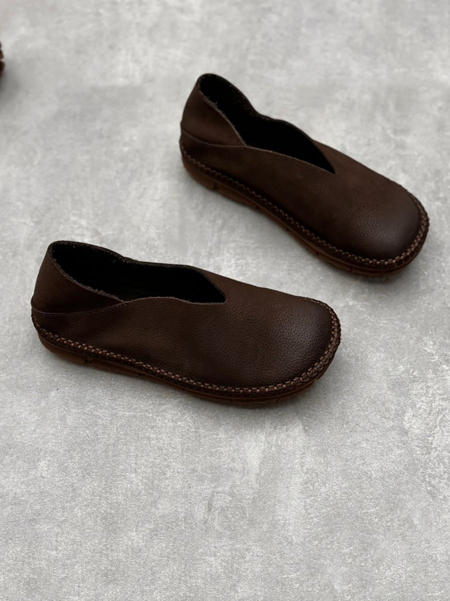 Women Summer Vintage Solid Leather Soft Flat Shoes