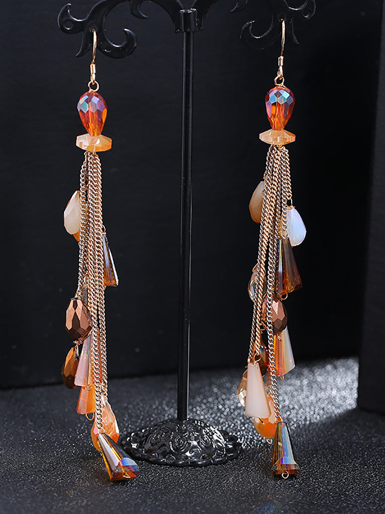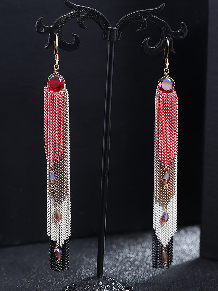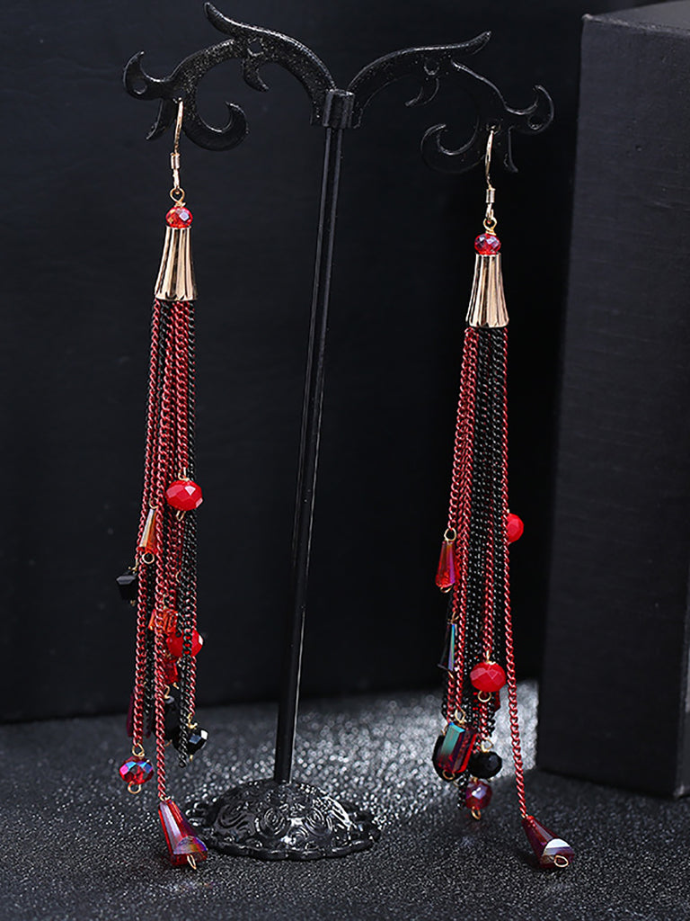 Women Vintage Bead Knitted Tassel Silver Earrings