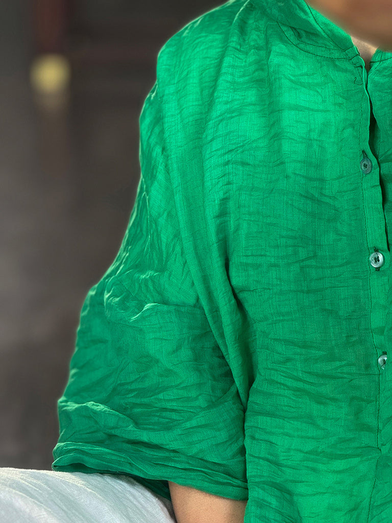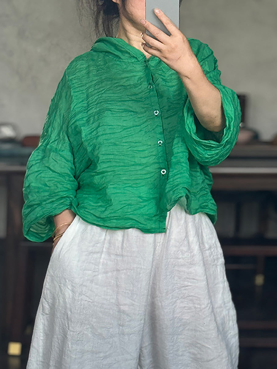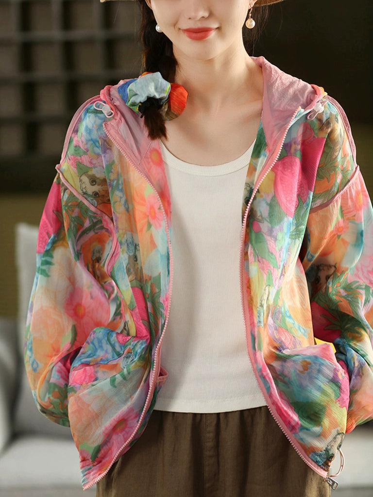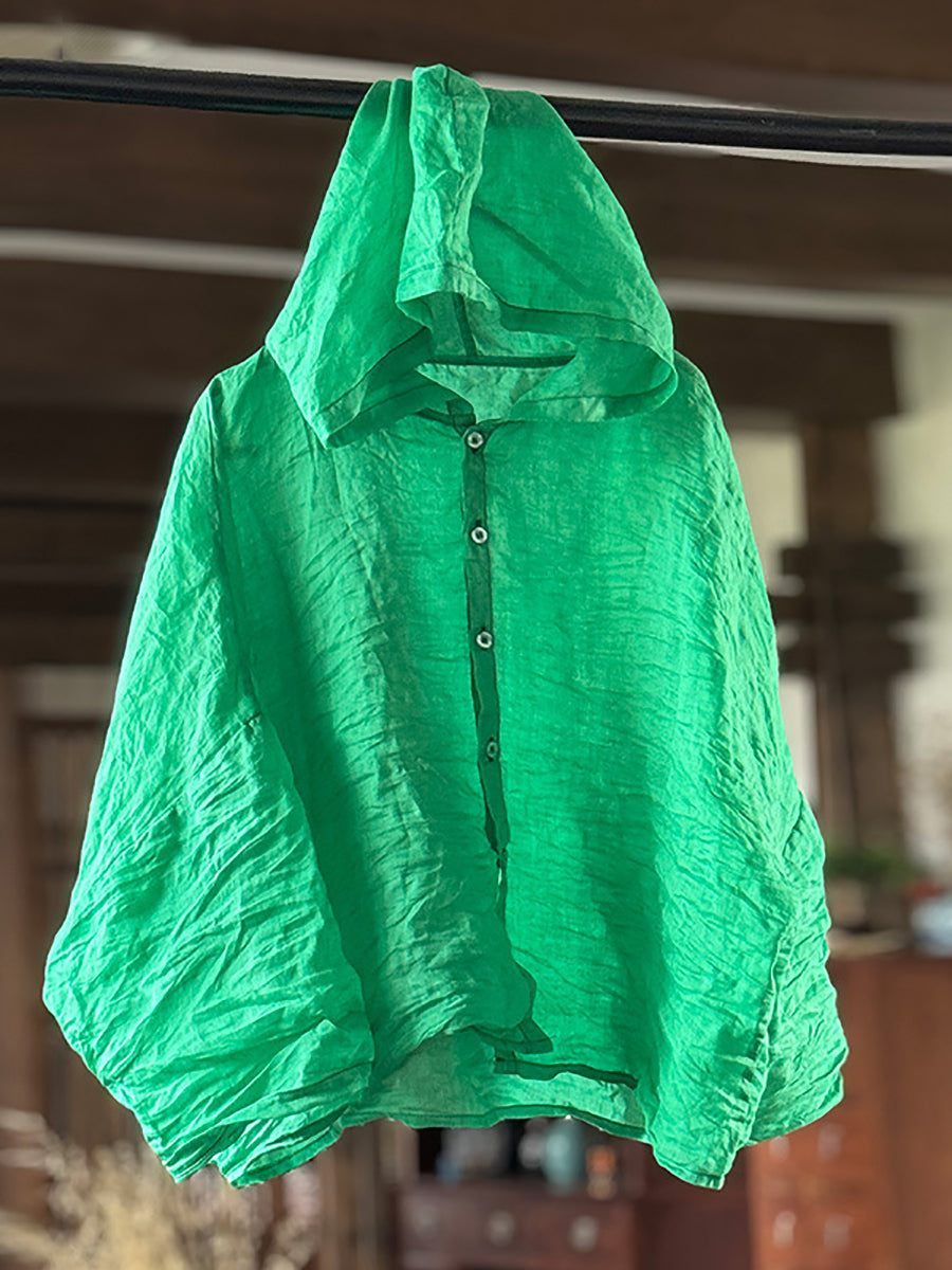 Women Vintage Flower Thin Summer Linen Hooded Shirt