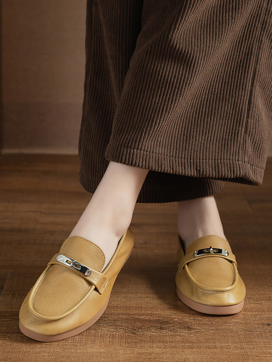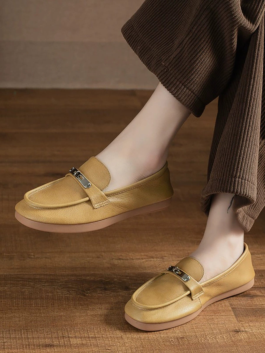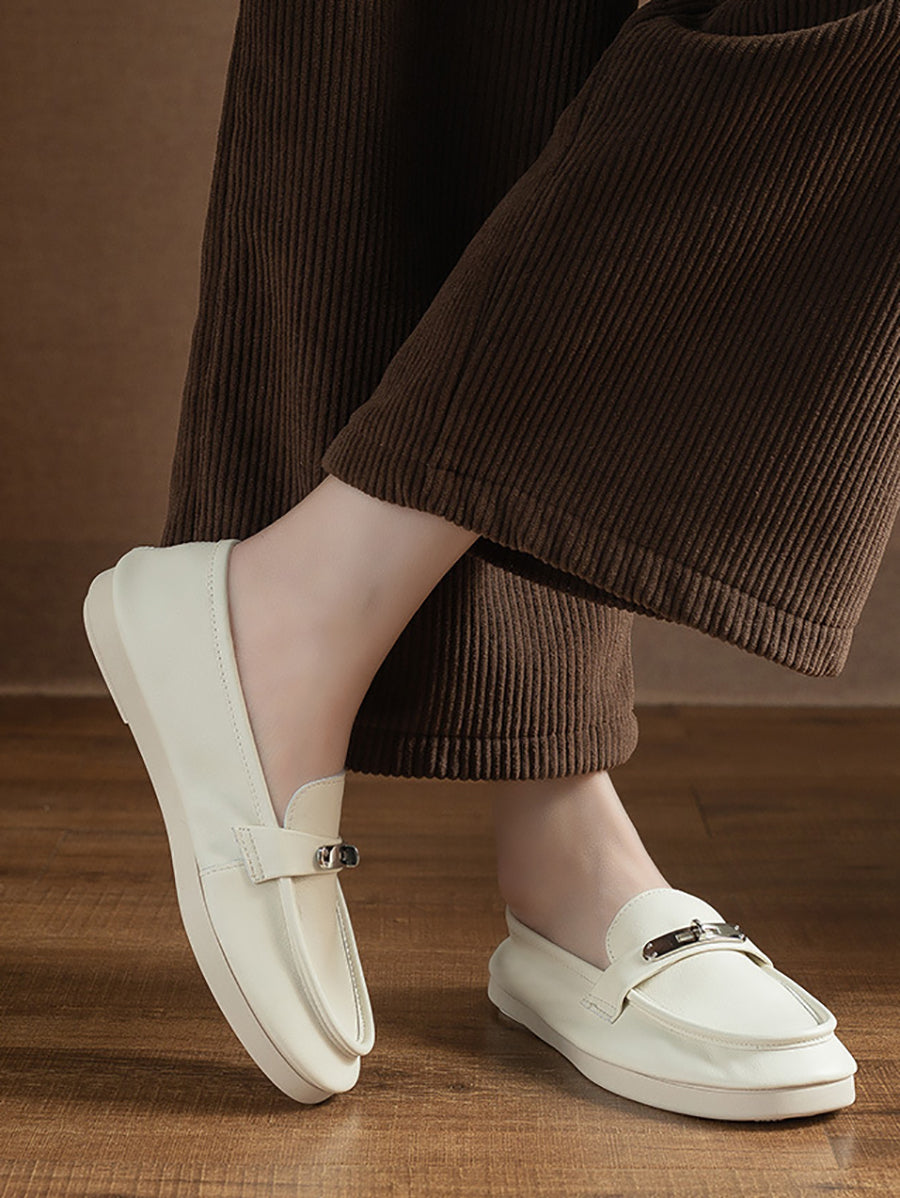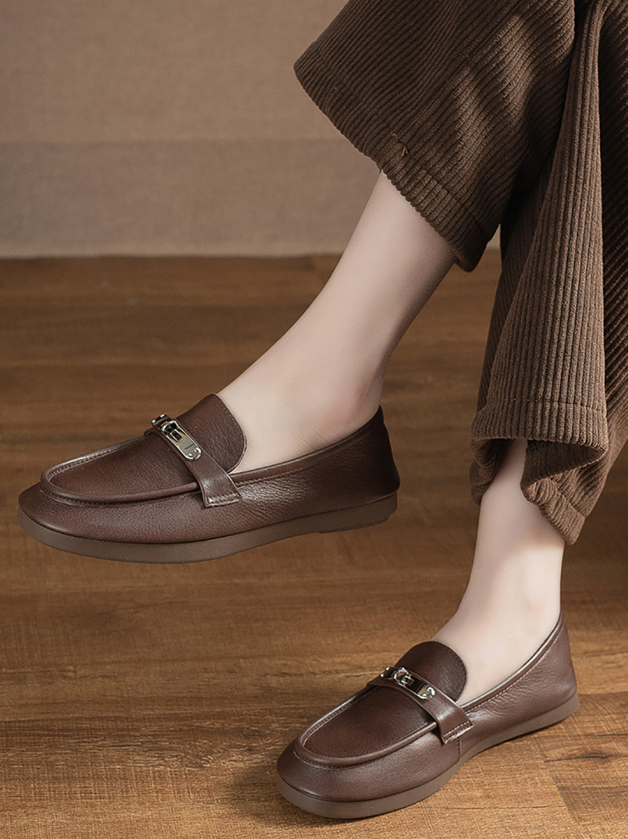 Women Vintage Genuine Leather Flat Loafer Shoes