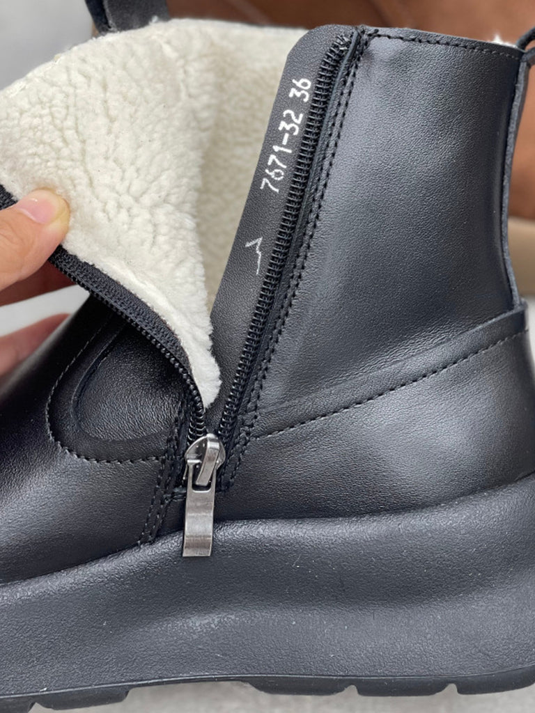 Women Vintage Genuine Leather Fleece-lined Platform Boots