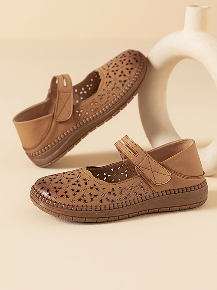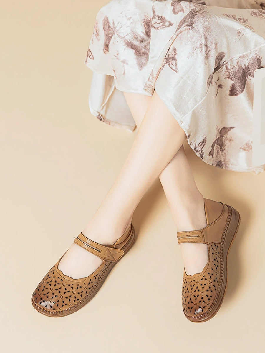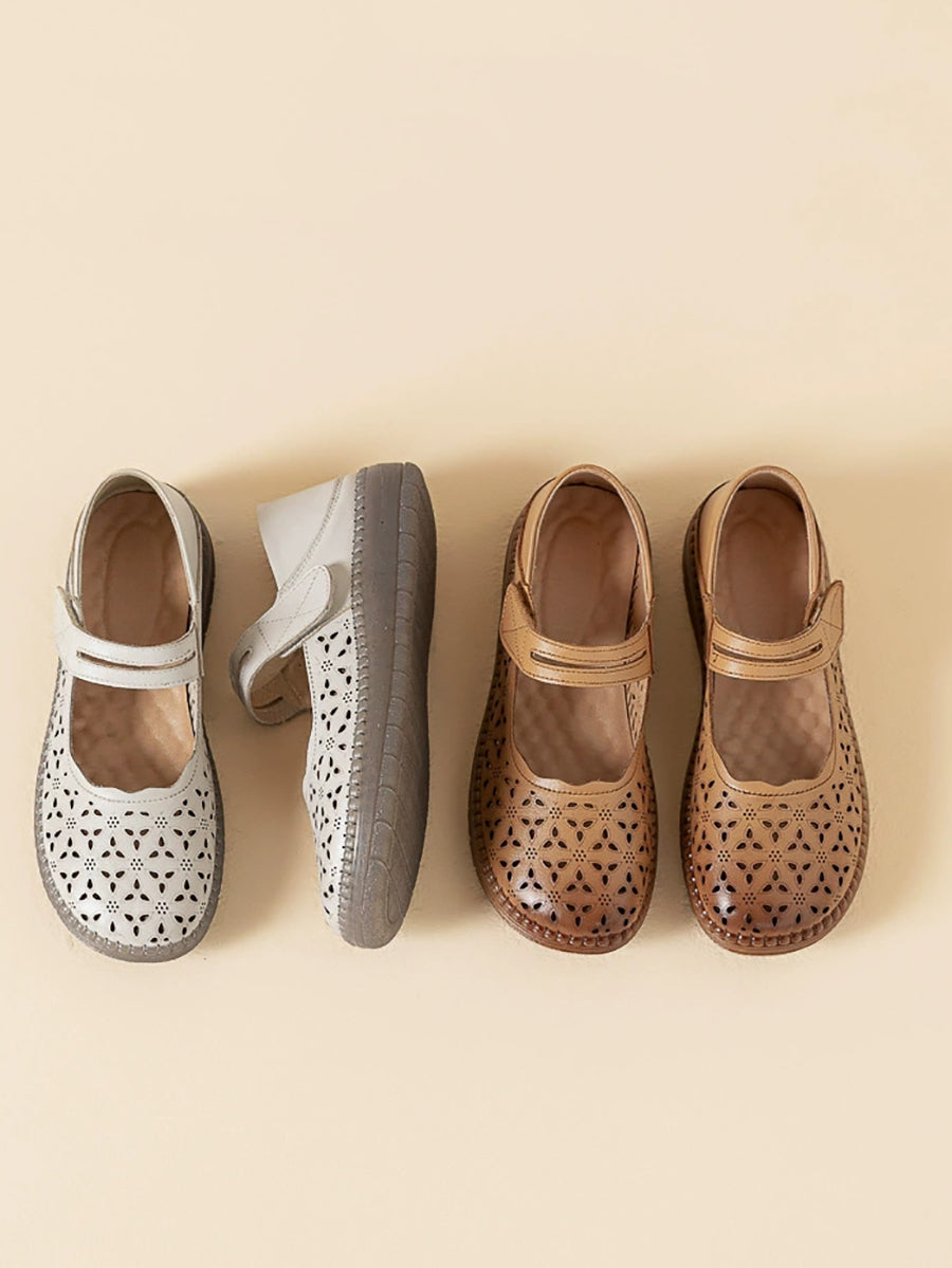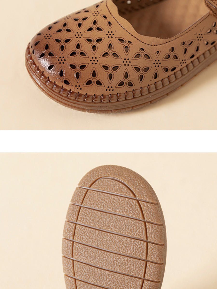 Women Vintage Genuine Leather Hollow Out Flat Shoes
