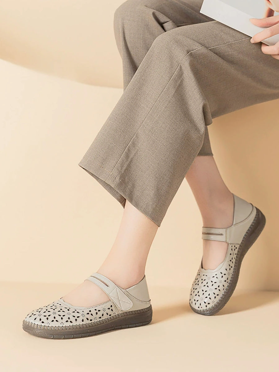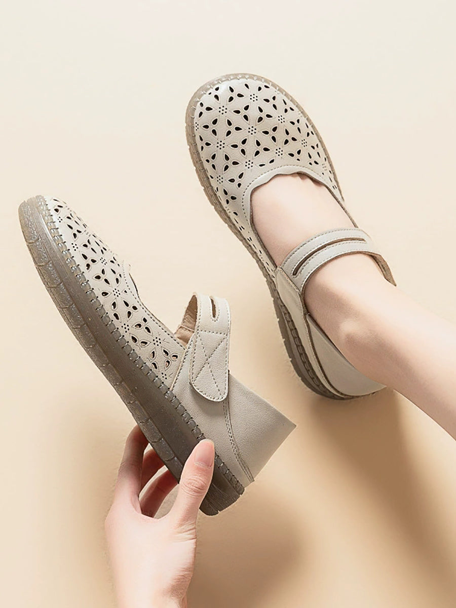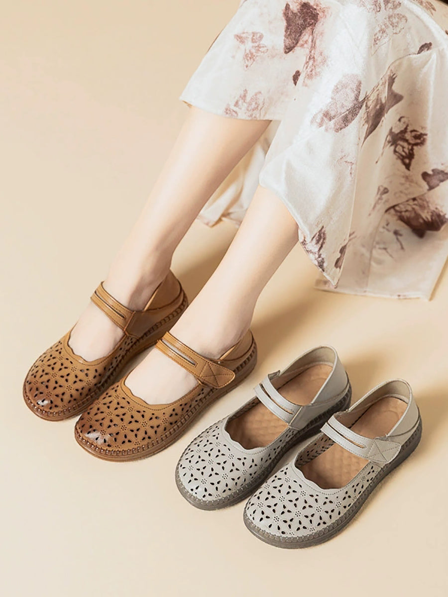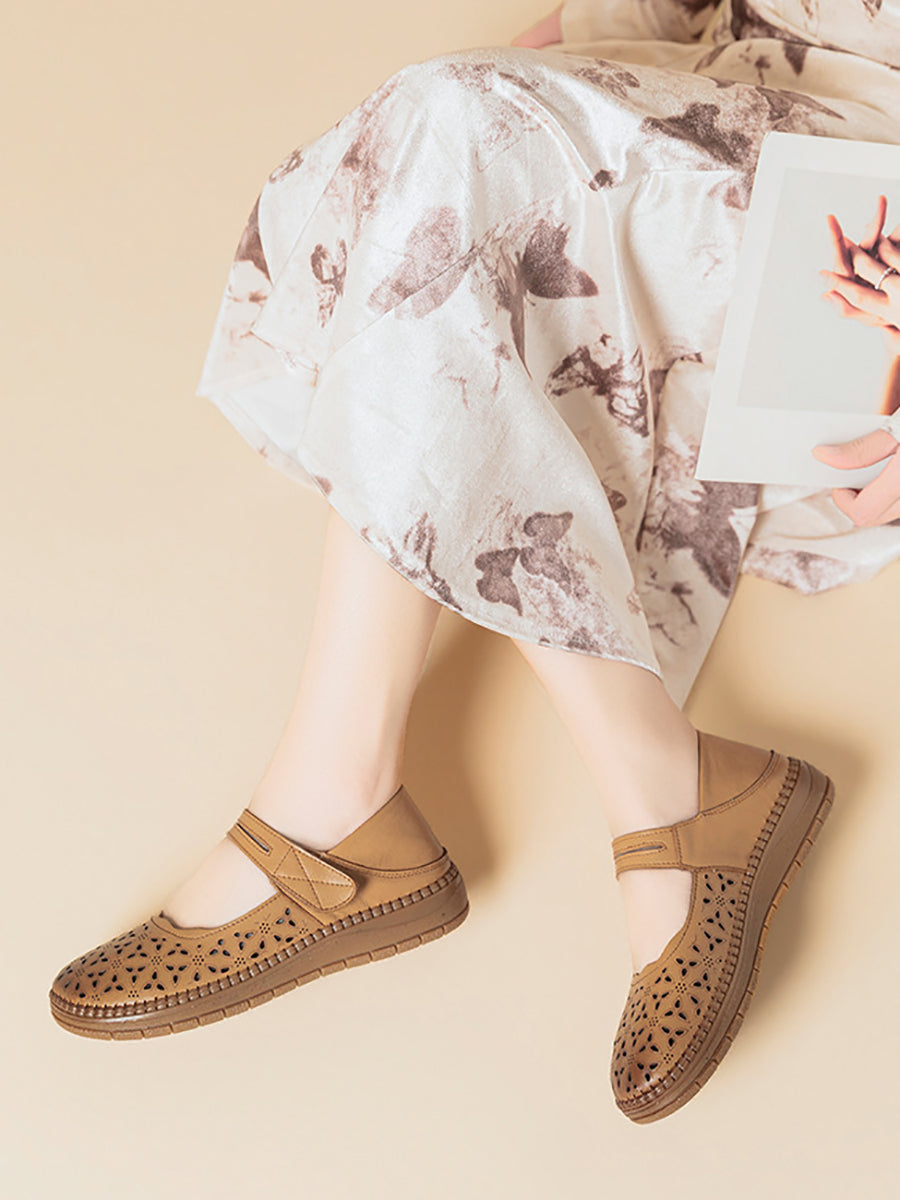 Women Vintage Genuine Leather Hollow Out Flat Shoes
