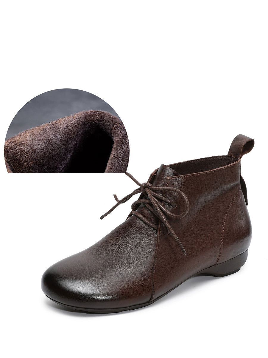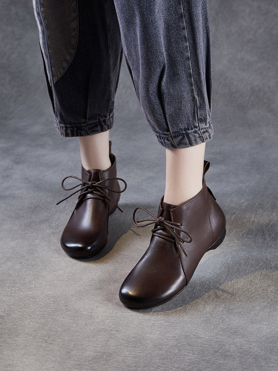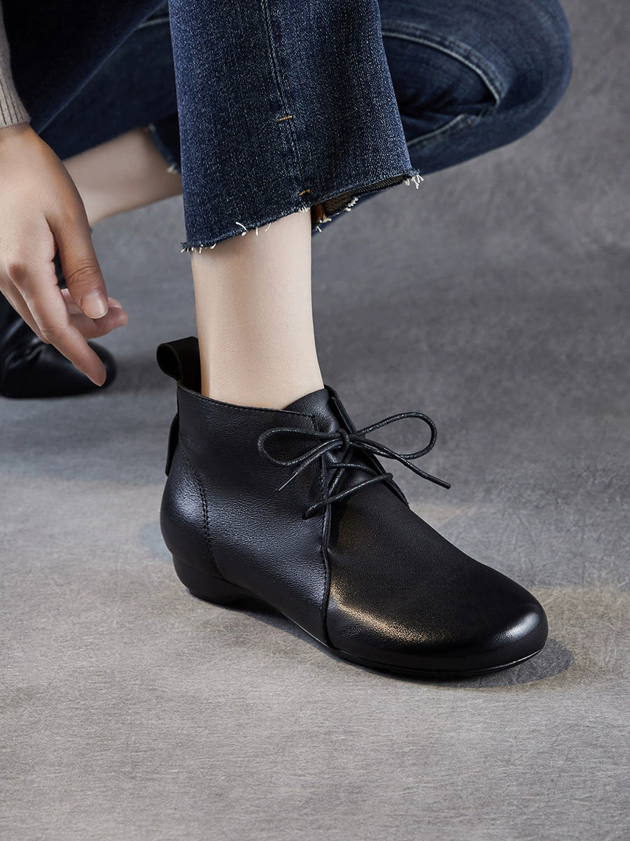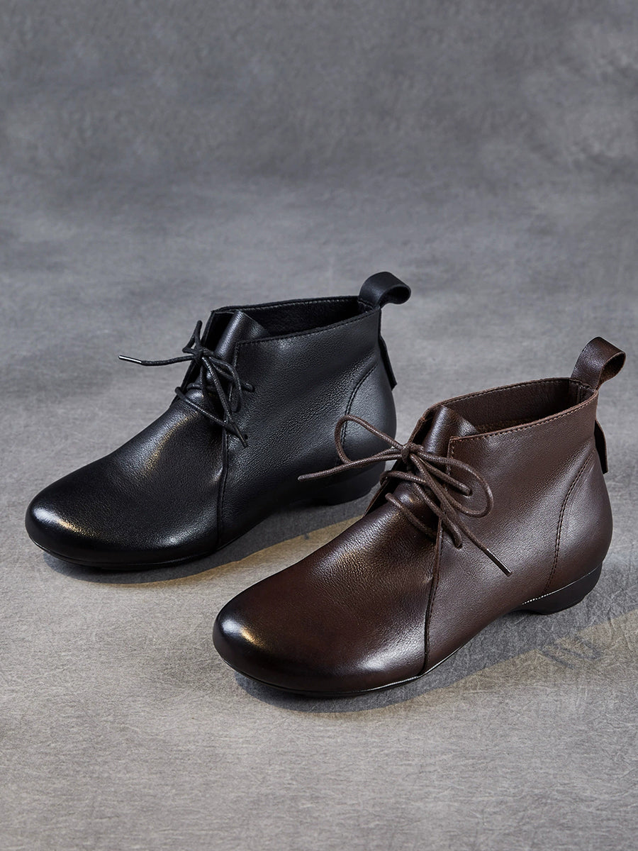Women Vintage Genuine Leather Low Heel Ankle Boots