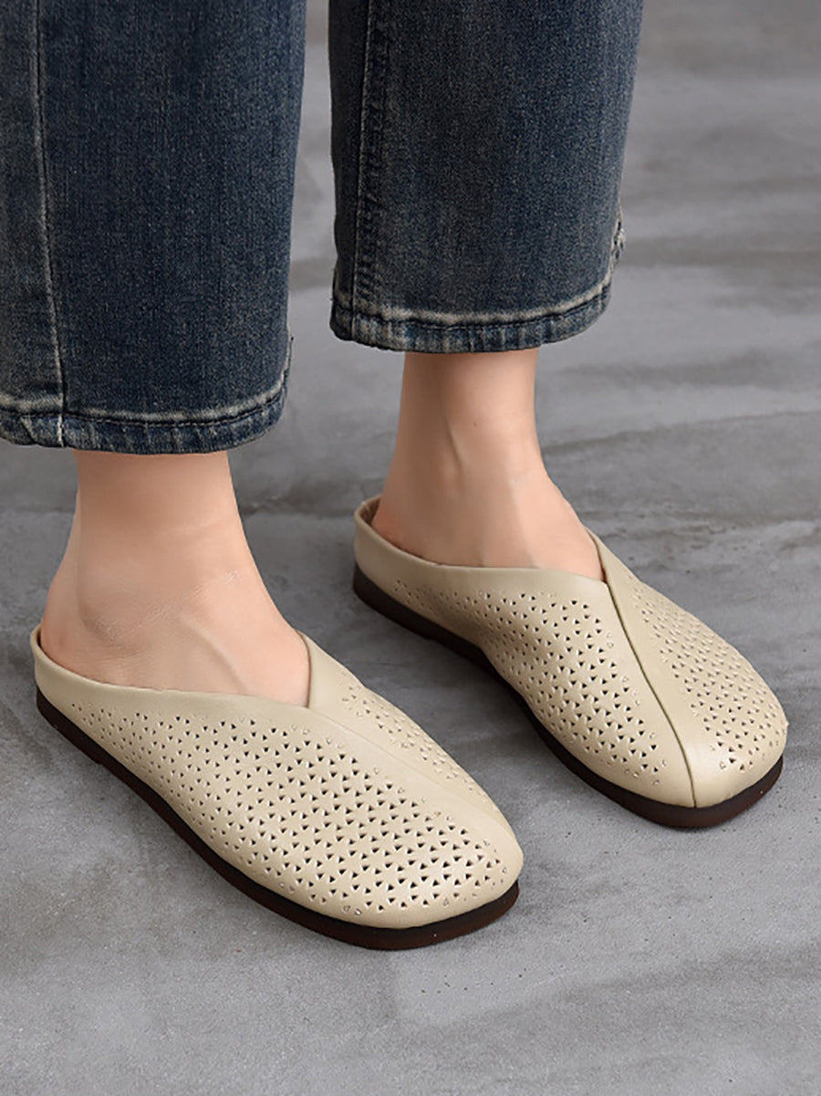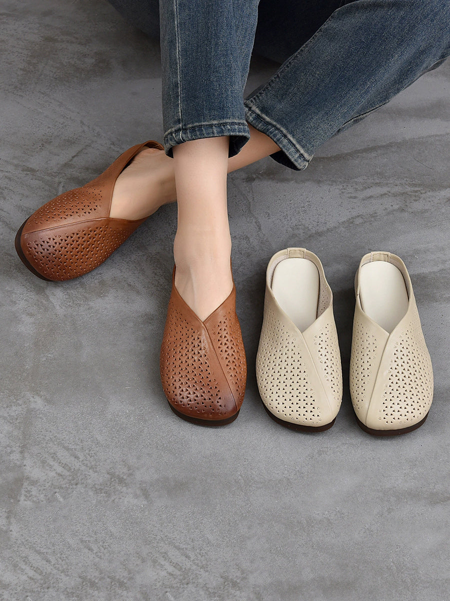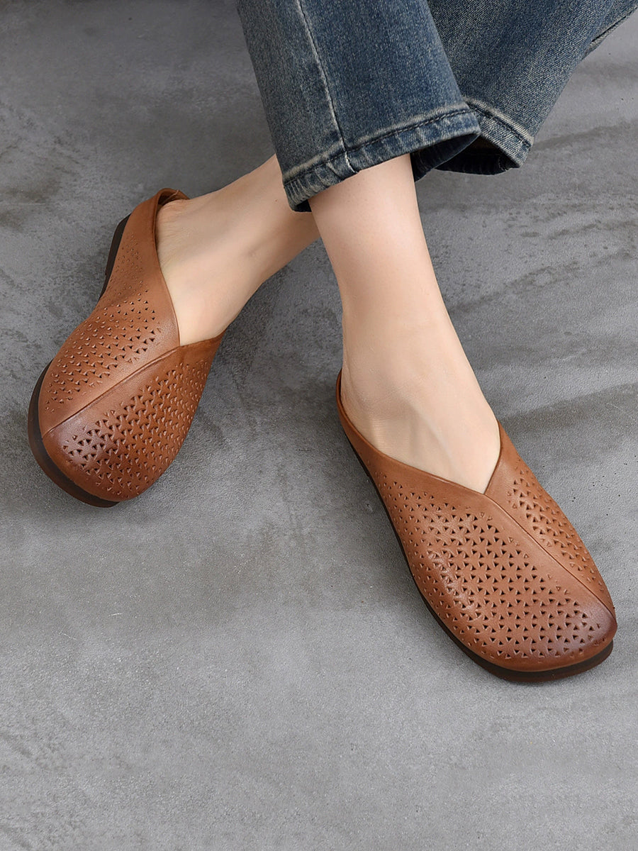 Women Vintage Genuine Leather Soft Flat Slippers