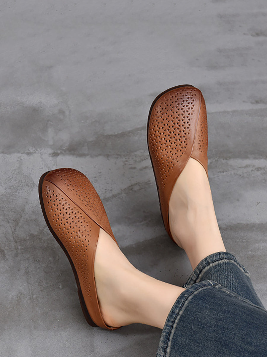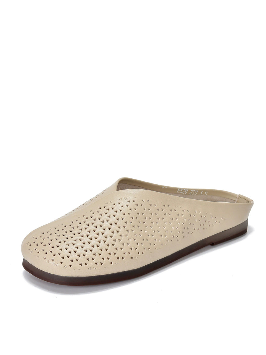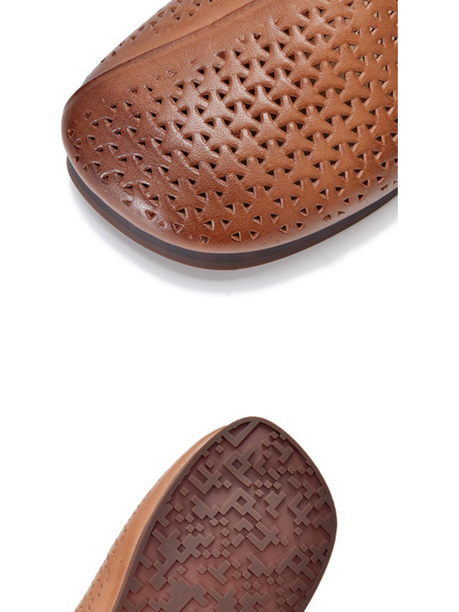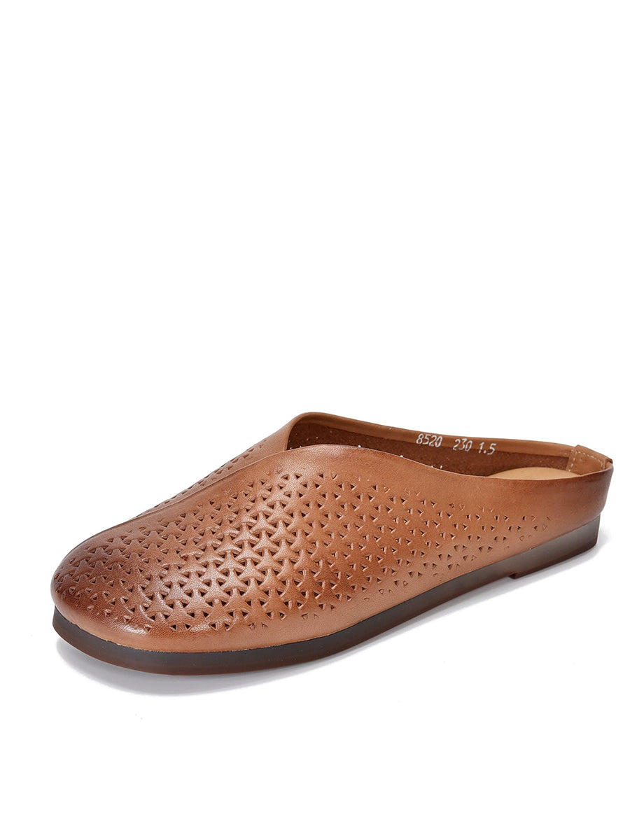 Women Vintage Genuine Leather Soft Flat Slippers