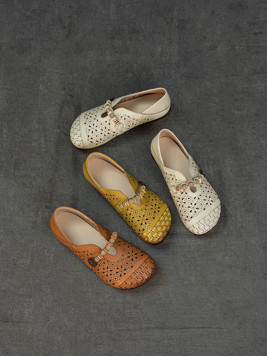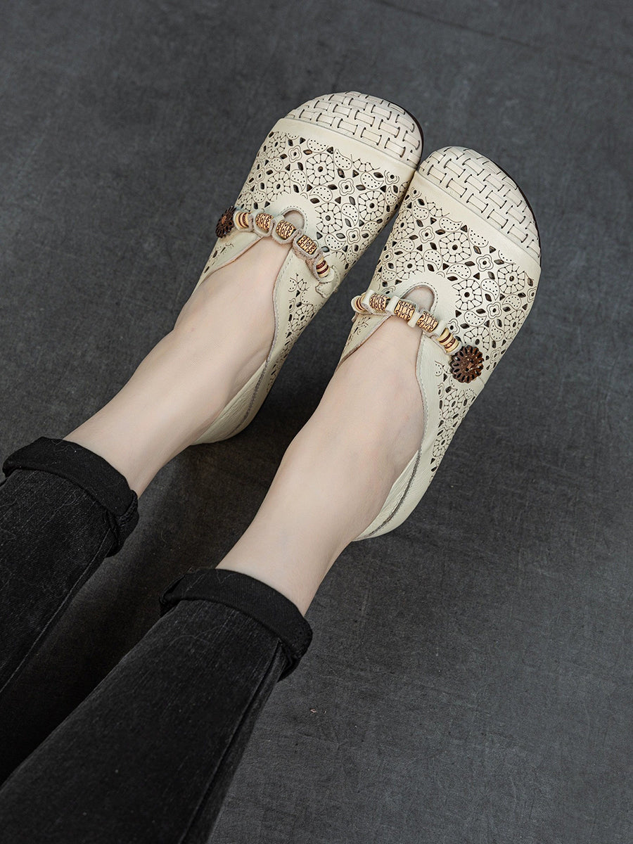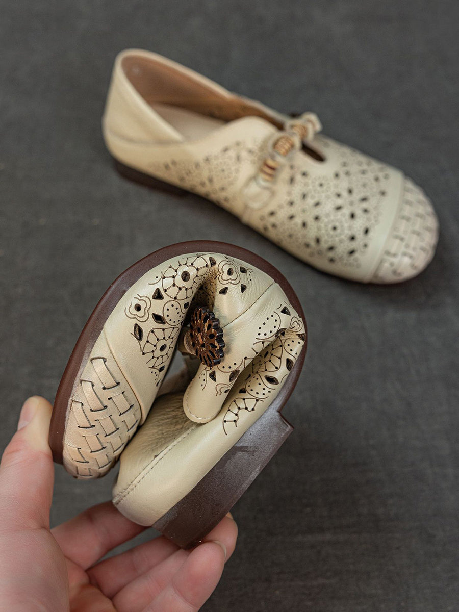 Women Vintage Hollow Out Genuine Leather Sandals