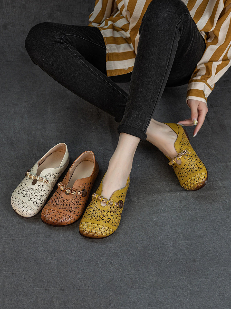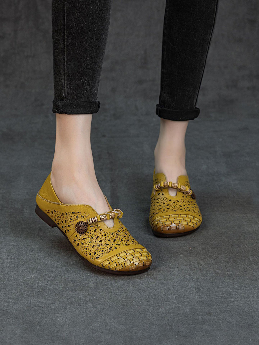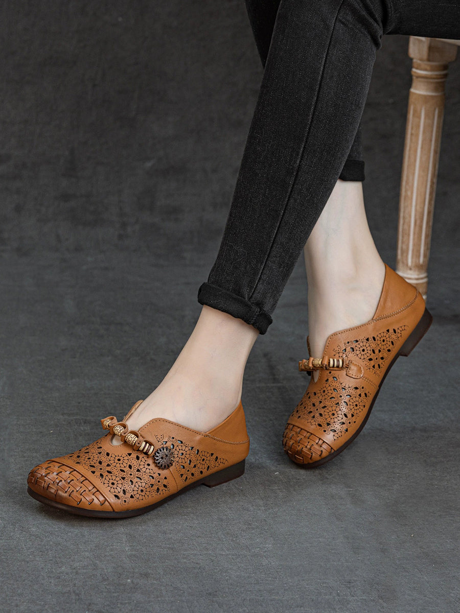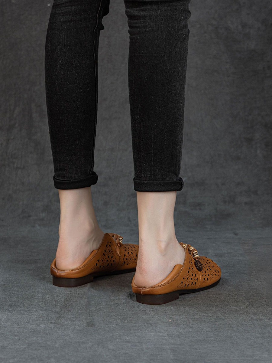 Women Vintage Hollow Out Genuine Leather Sandals