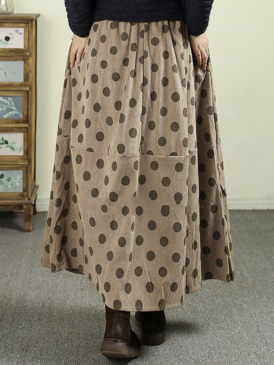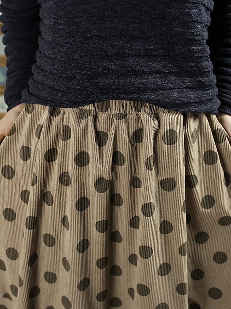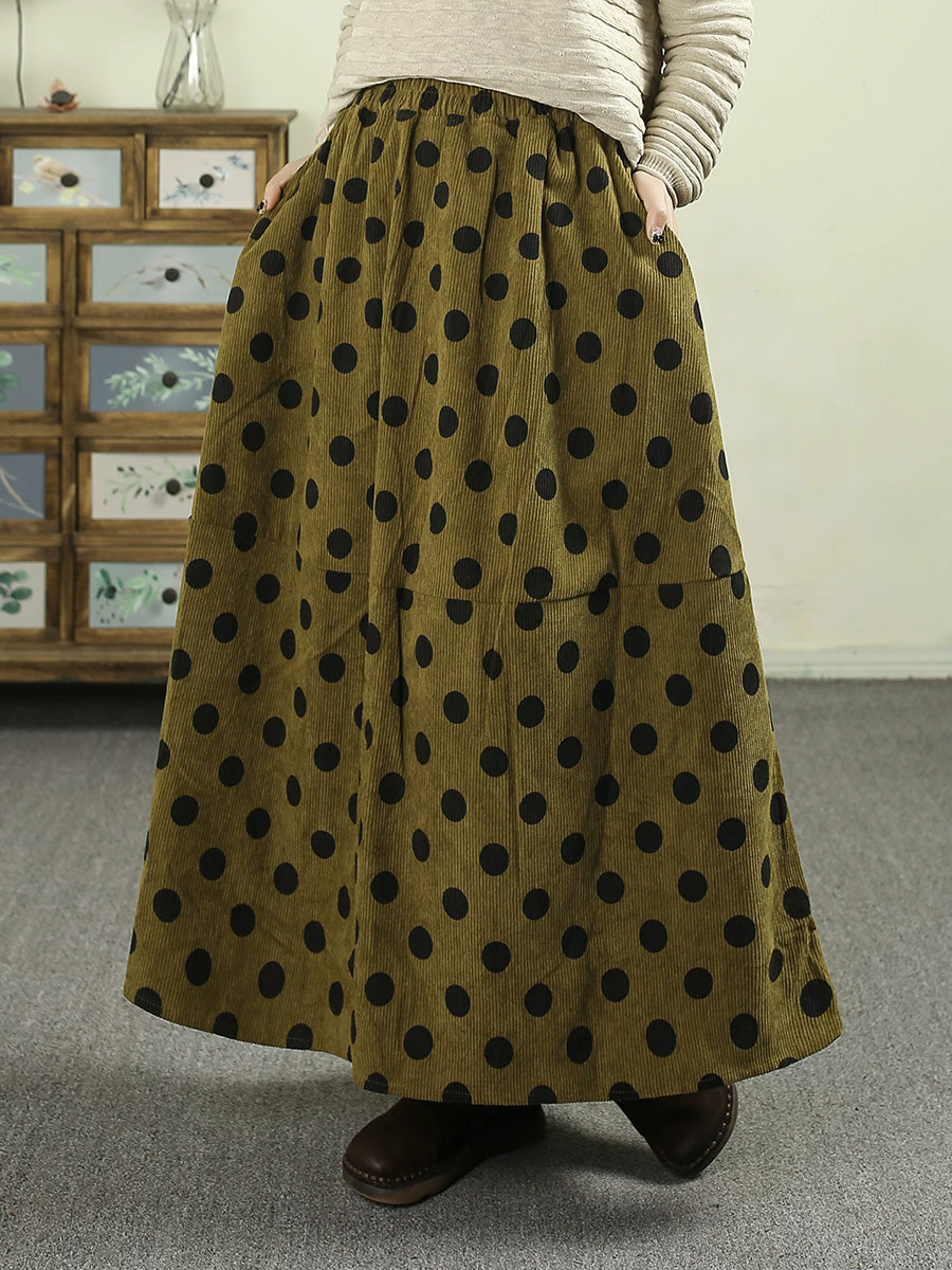 Women Winter Artsy Dot Corduroy A-Shape Skirt