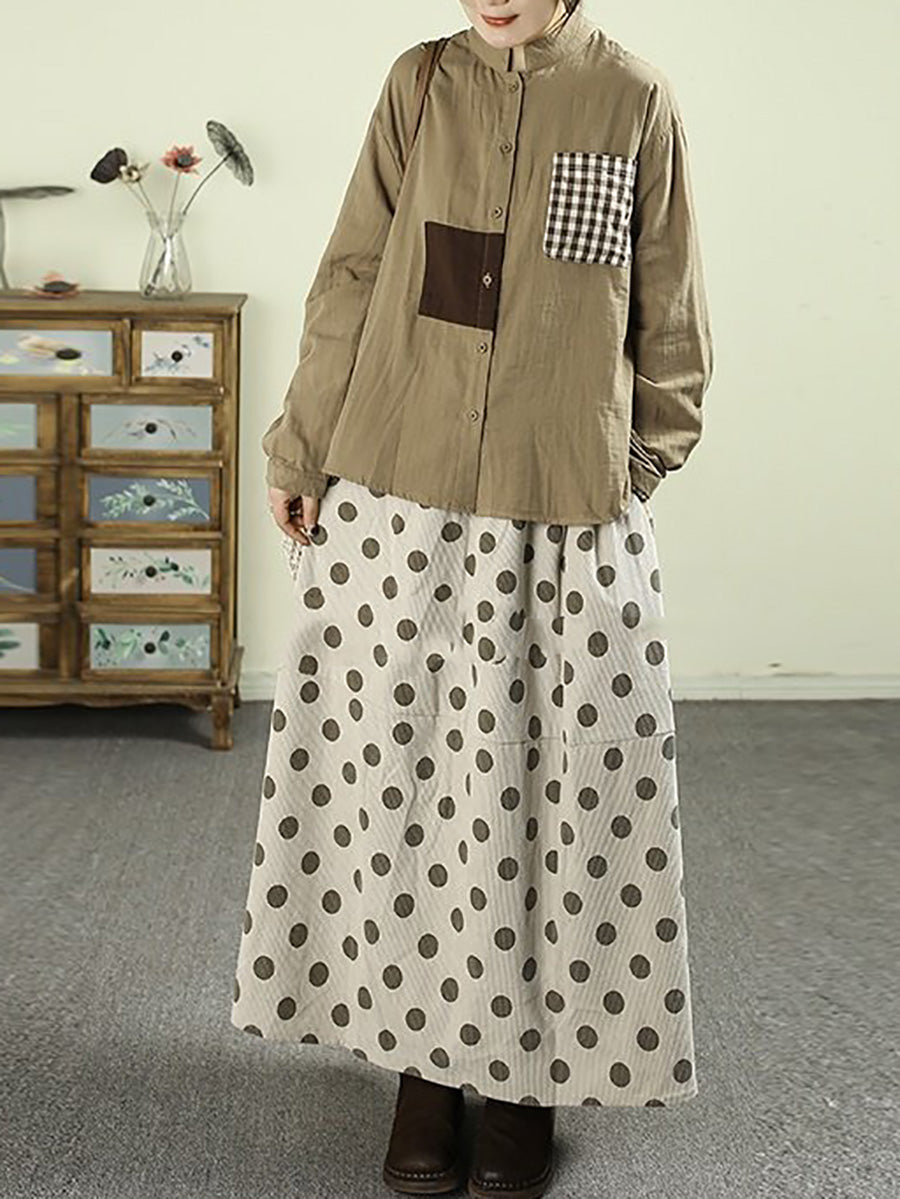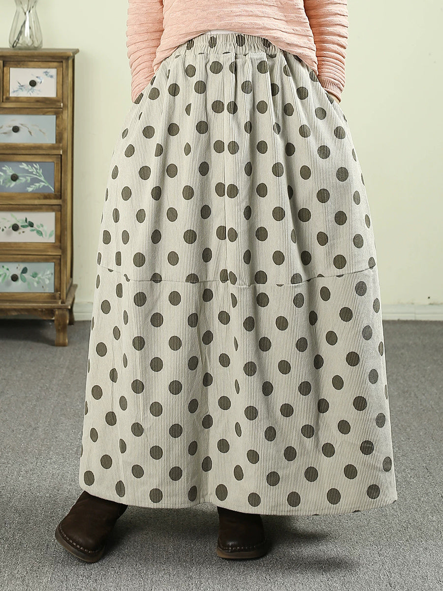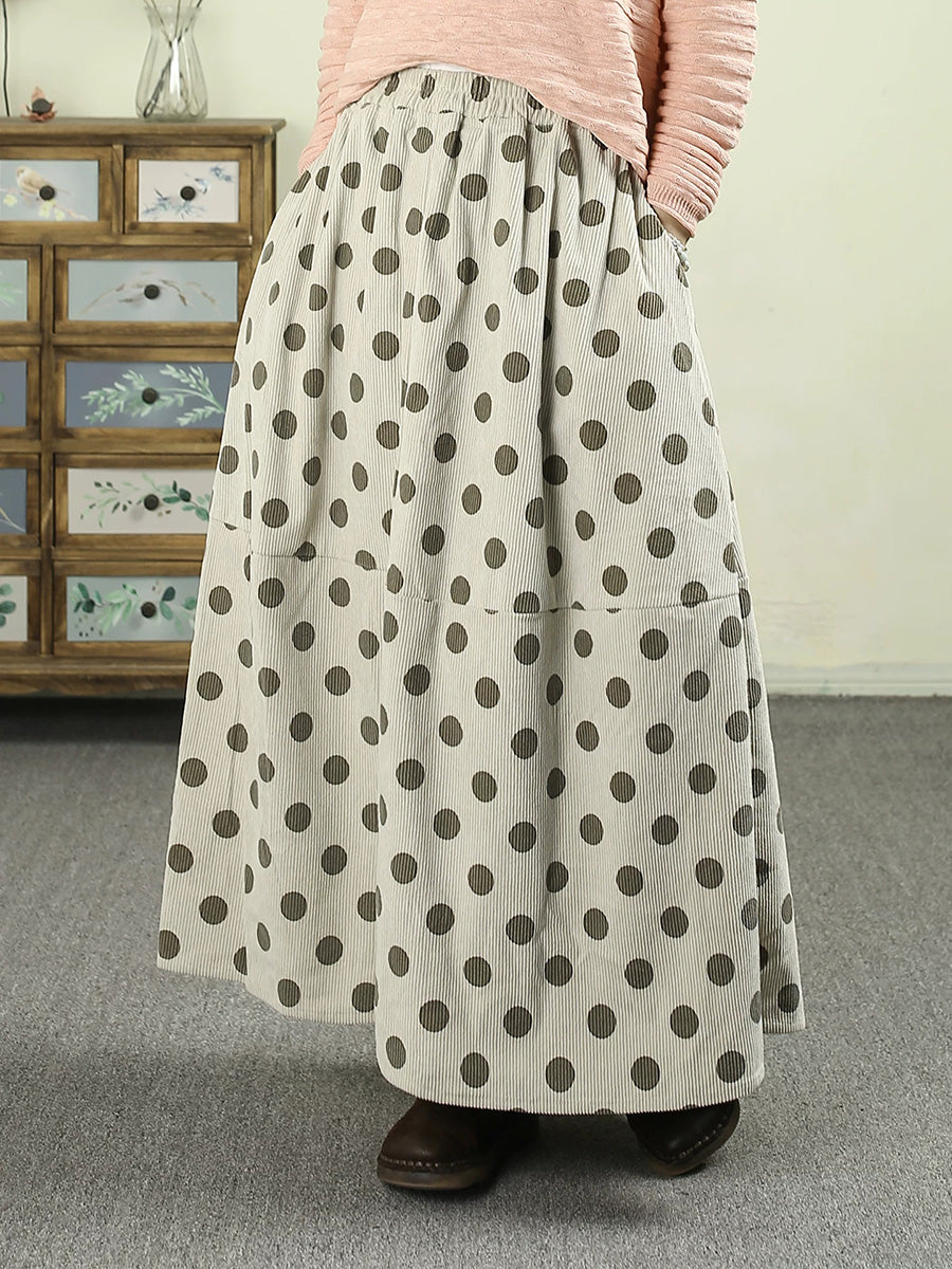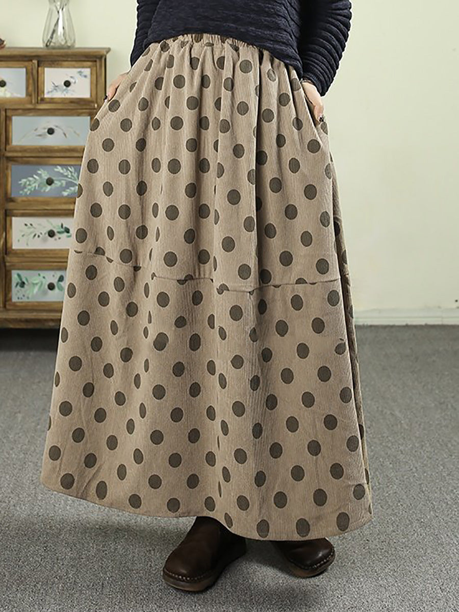 Women Winter Artsy Dot Corduroy A-Shape Skirt