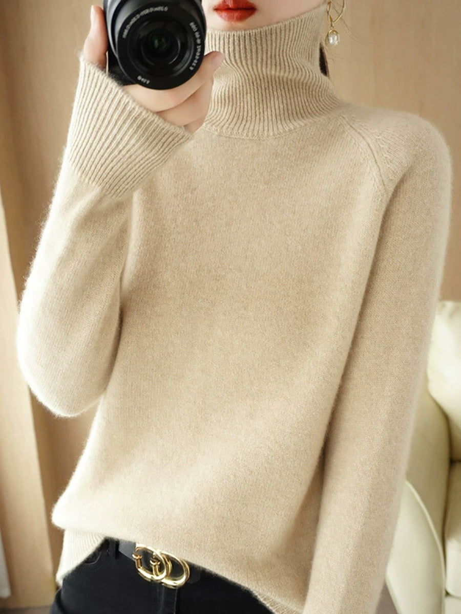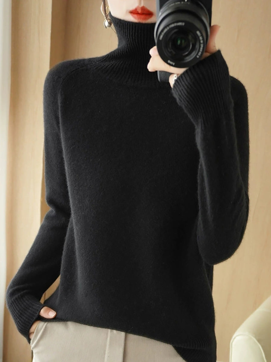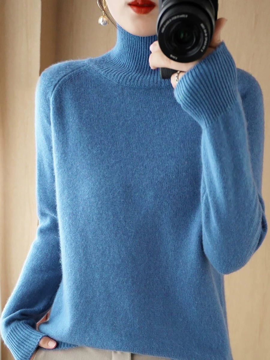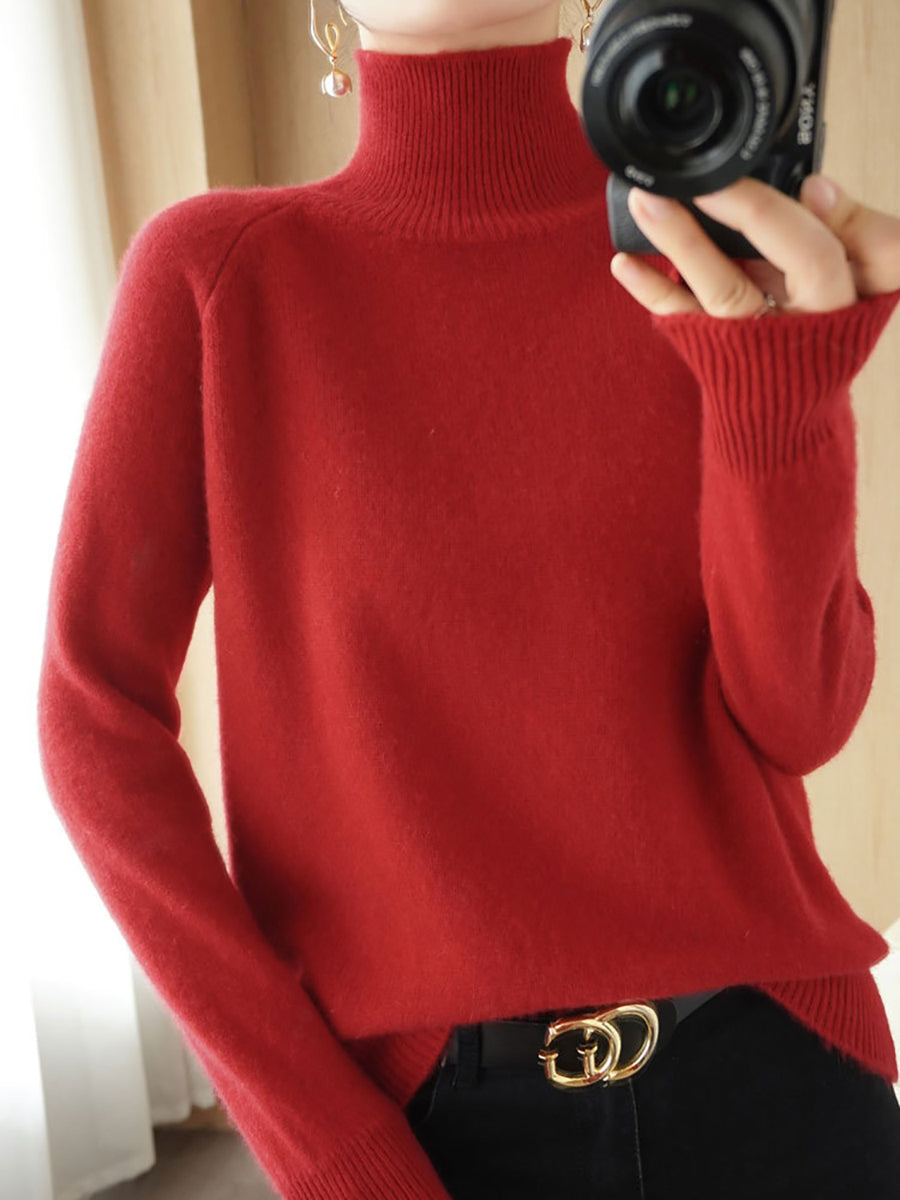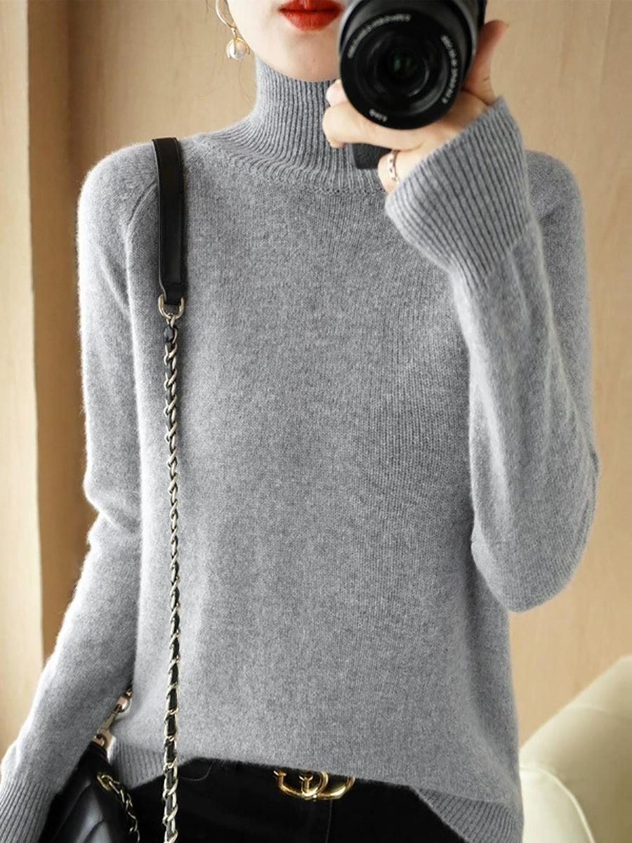 Women Winter Artsy Pure Color Turtleneck Sweater