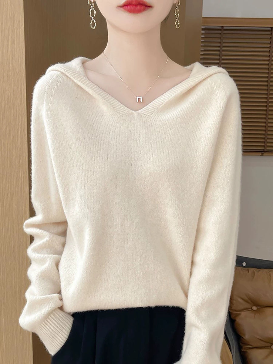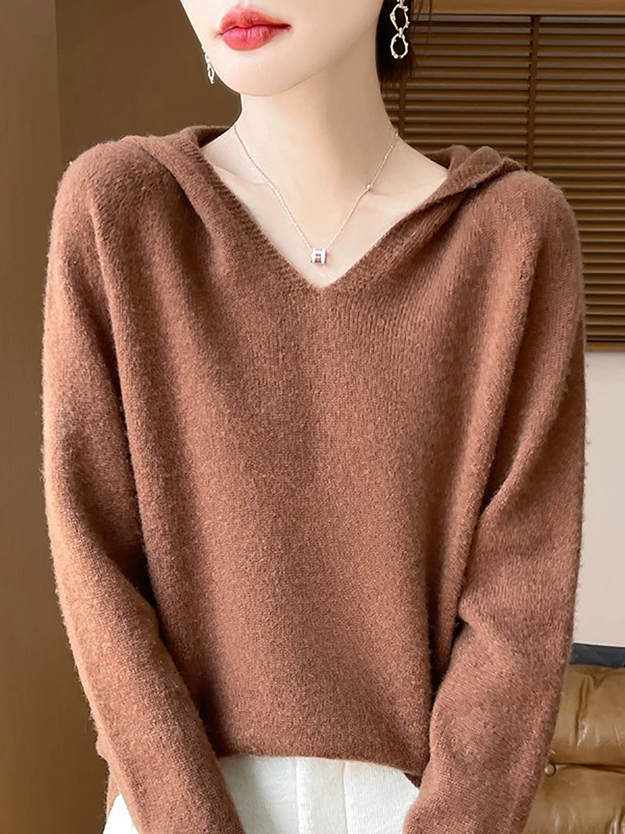Women Winter Casual Hooded Pure Color Sweater