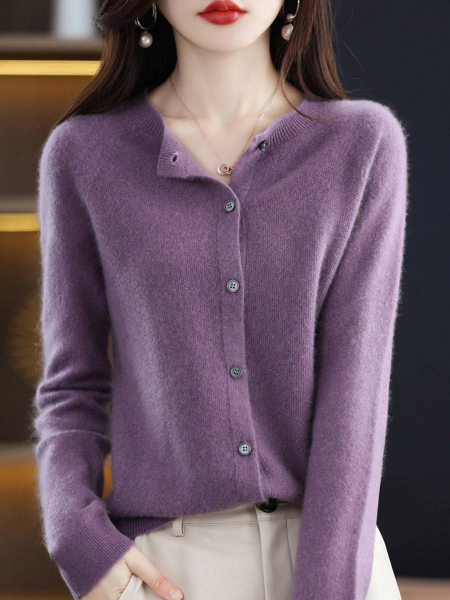 Women Winter Casual O-Neck Pure Color Knitted Sweater