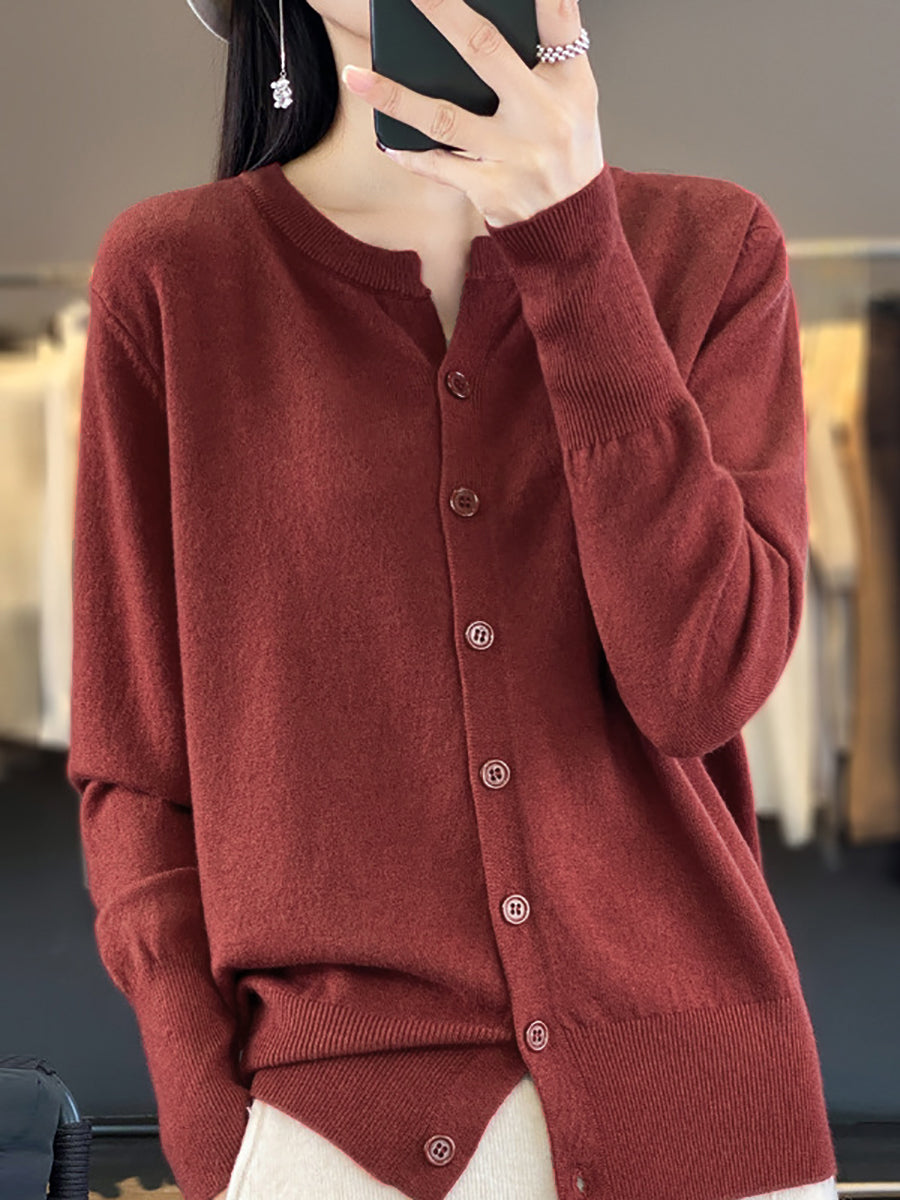 Women Winter Casual Pure Color Knitted O-Neck Sweater